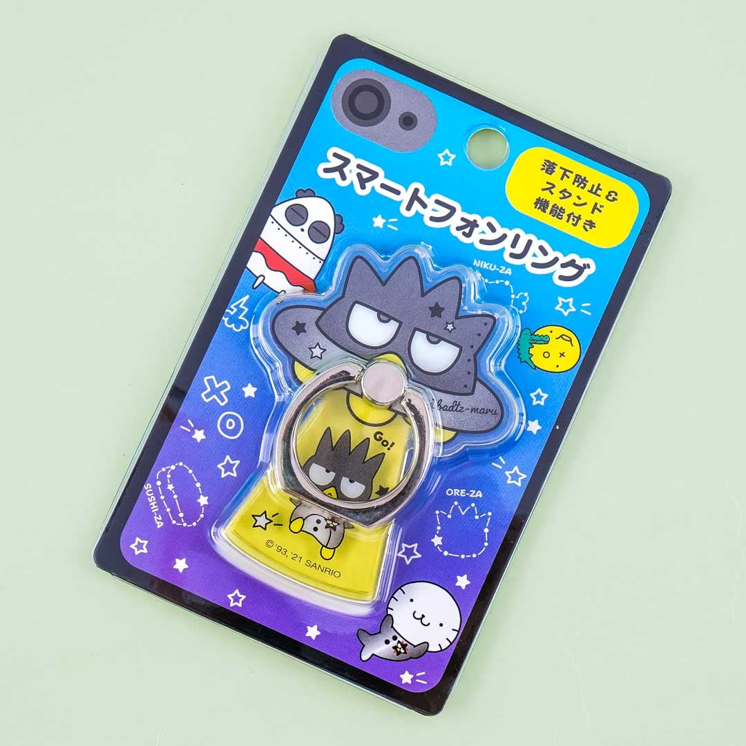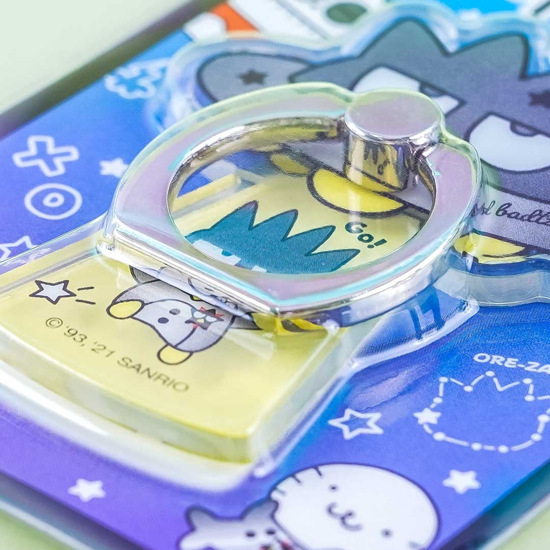 Use this super cute multi-ring as a holder or a phone stand! It features a die-cut acrylic base with prints of Bad Badtz-Maru being beamed up by a flying saucer that looks like him! This super cute phone holder has an adjustable metal ring and an adhesive at the back.
