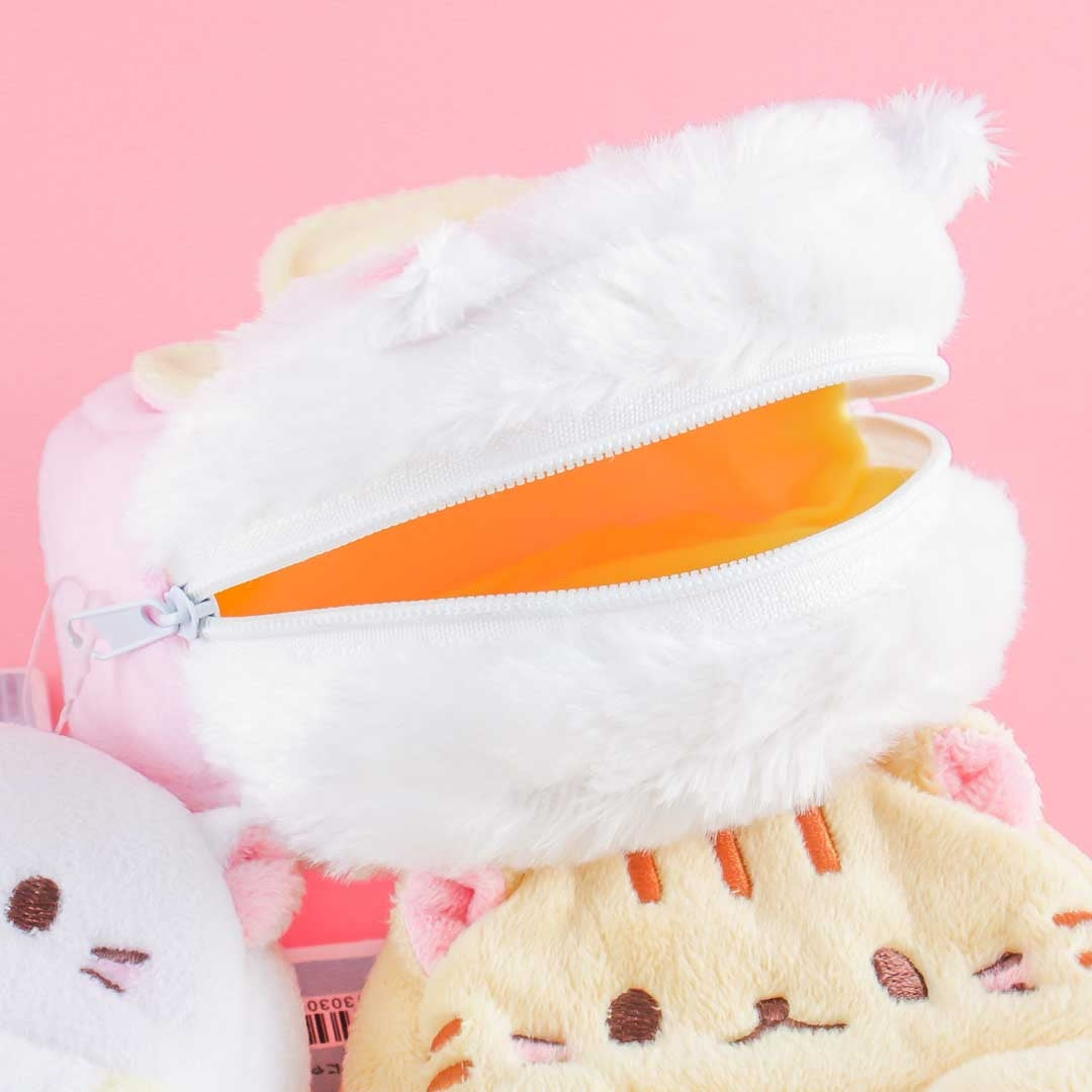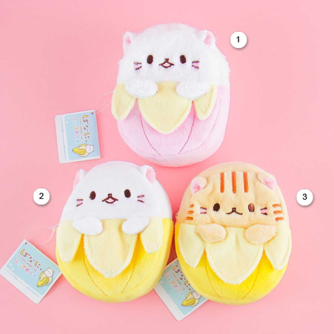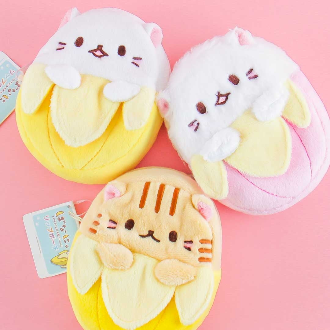 Organize your loose change using this round coin purse shaped like a Bananya character! This purse is super soft and has a zipper closure.