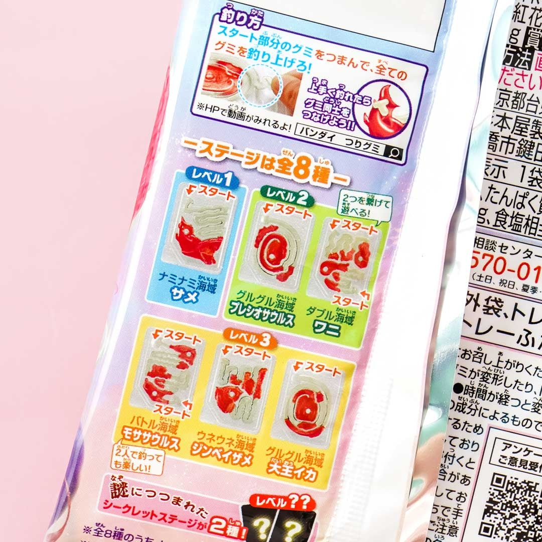 Enjoy this tasty treat shaped like a sea creature in the sea. The red-colored gummy has a strawberry flavor while the white gummy has a yogurt drink taste! By ordering, you will receive a random design