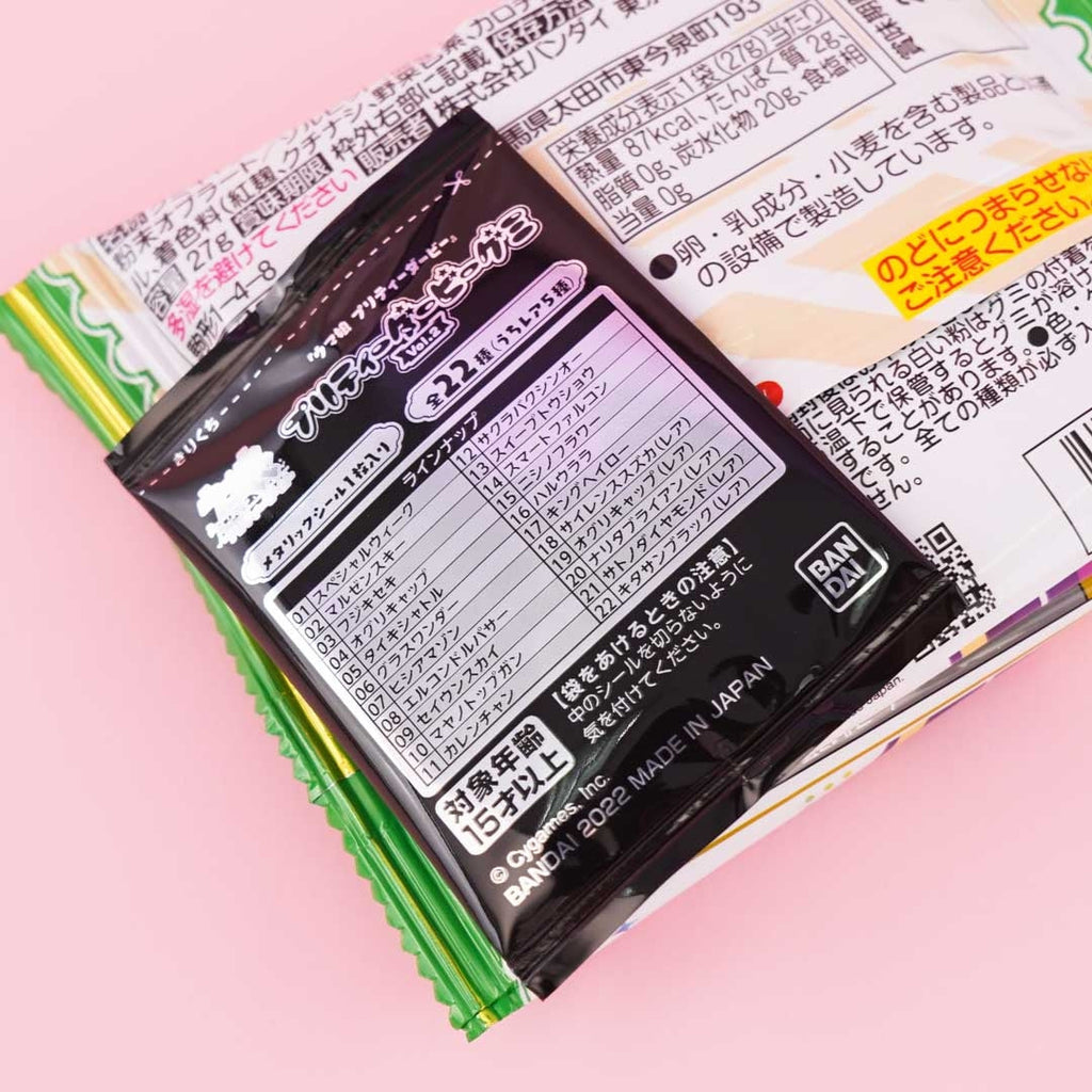 Have fun snacking on this pack of grape, orange, and soda-flavored gummy candies. It features a print of a character from Uma Musume Pretty Derby.This gummy pack also has a glossy and glittery chibi sticker randomly selected from a set of 22.