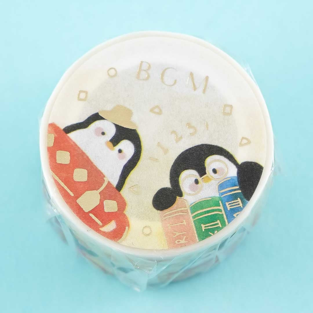 Kawaii-fy the borders of your notebooks using this super cute masking tape made of Japanese paper with gold foil details! This colorful washi tape features prints of cuddly penguins exploring items inside a general merchandise store.