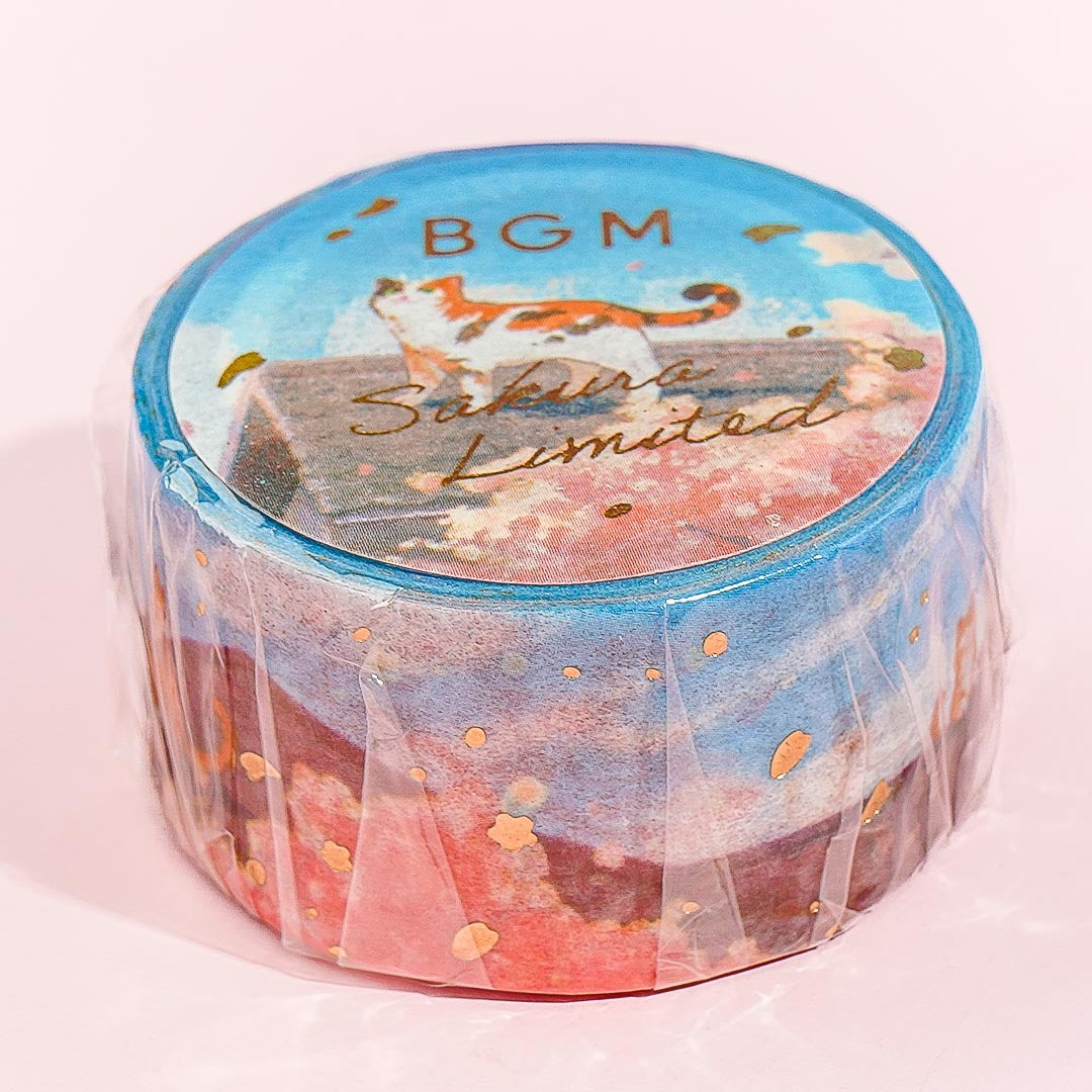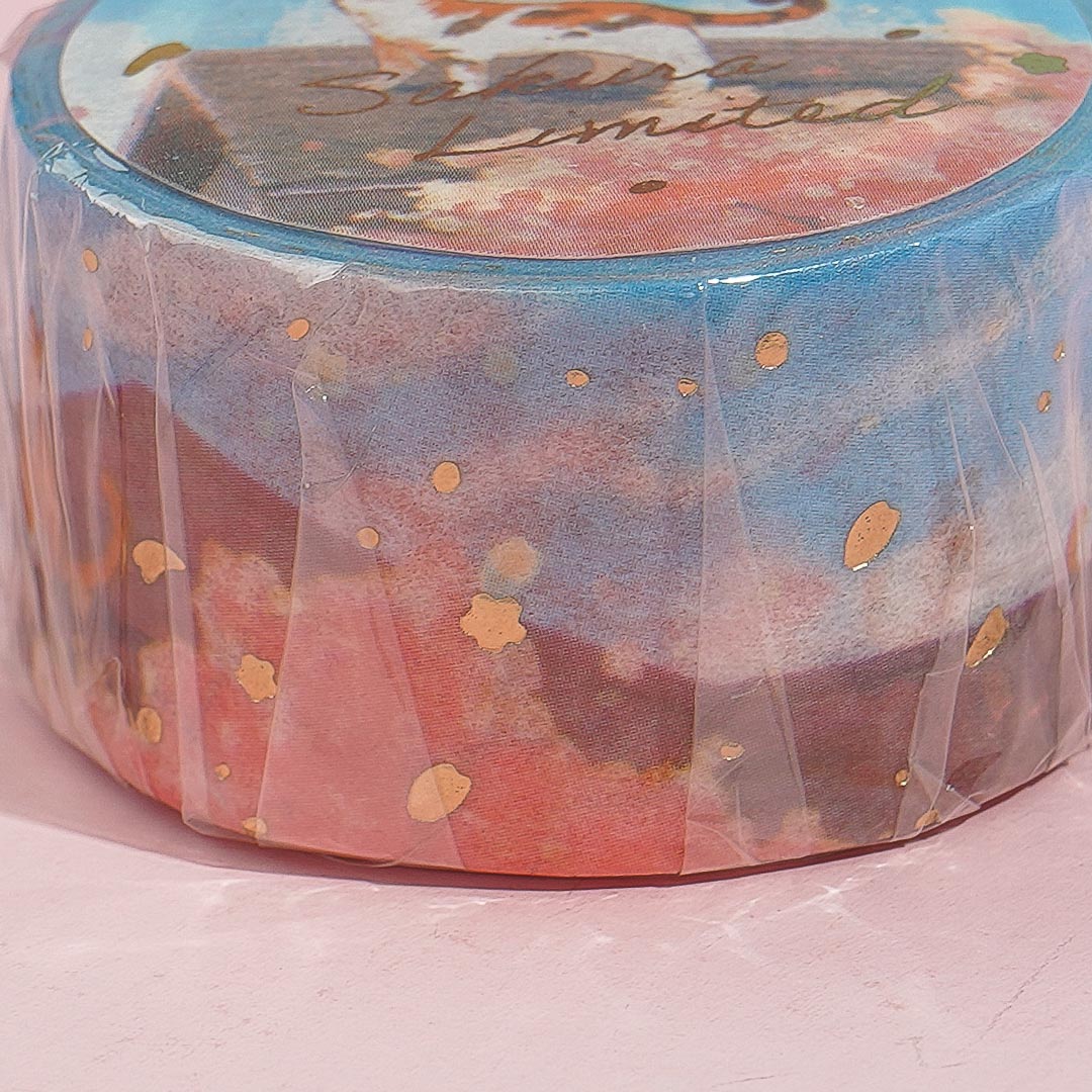 This kawaii tape showcases an illustration of a rooftop scenery filled with cherry blossoms and cats. It even has gold foil stamping to add an elegant touch. Use this masking tape to decorate your scrapbook!