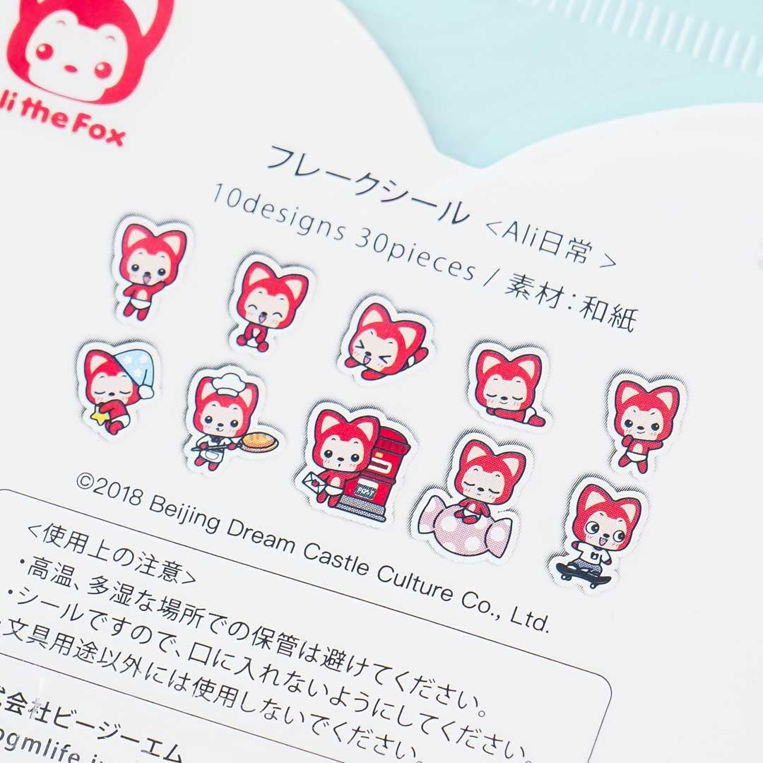 • A super cute set of die-cut sticker flakes illustrated with Ali the Fox doing random stuff