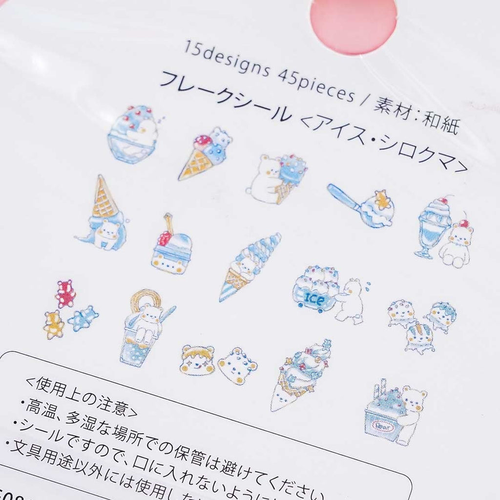 Add a major dose of cuteness to your scrapbook with this kawaii pack of die-cut sticker flakes. It features cute polar bears eating ice cream! These stickers are made of a traditional Japanese paper called washi.