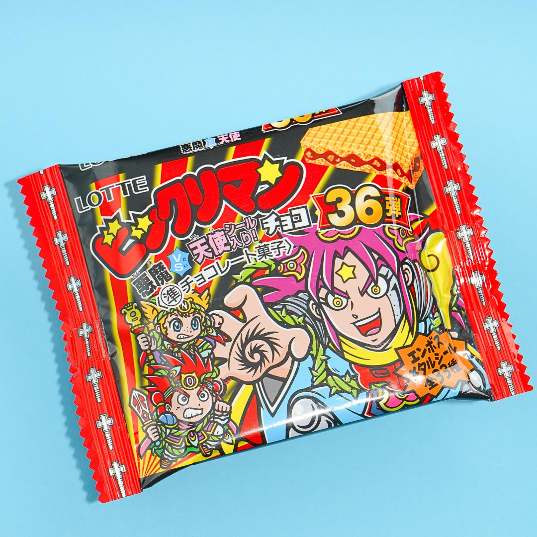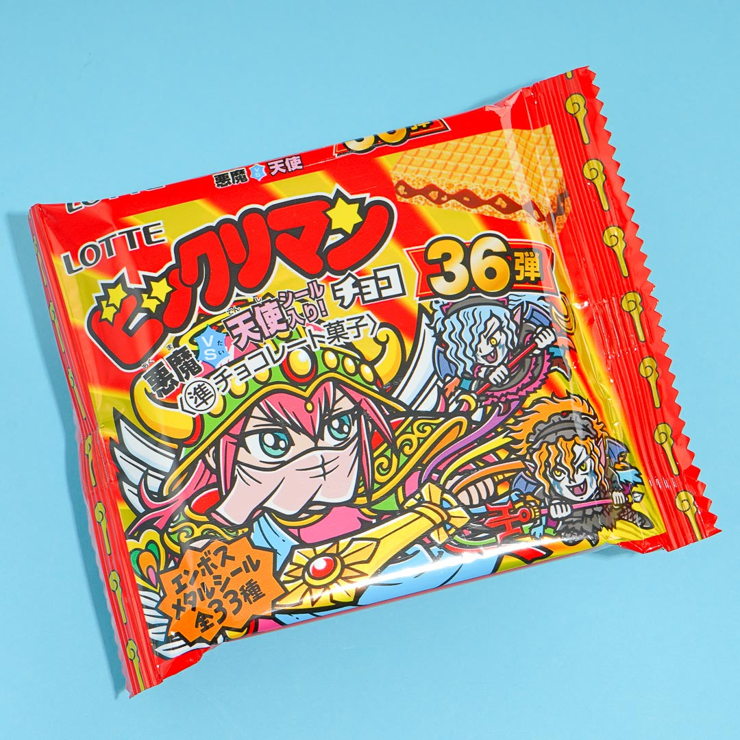 The long-awaited new release for Lotte's Bikkuriman Devil vs Angel 36th edition is here! The delicious chocolate-filled wafer comes with an embossed metallic sticker featuring a surprise design. Add it to your otaku collection!
