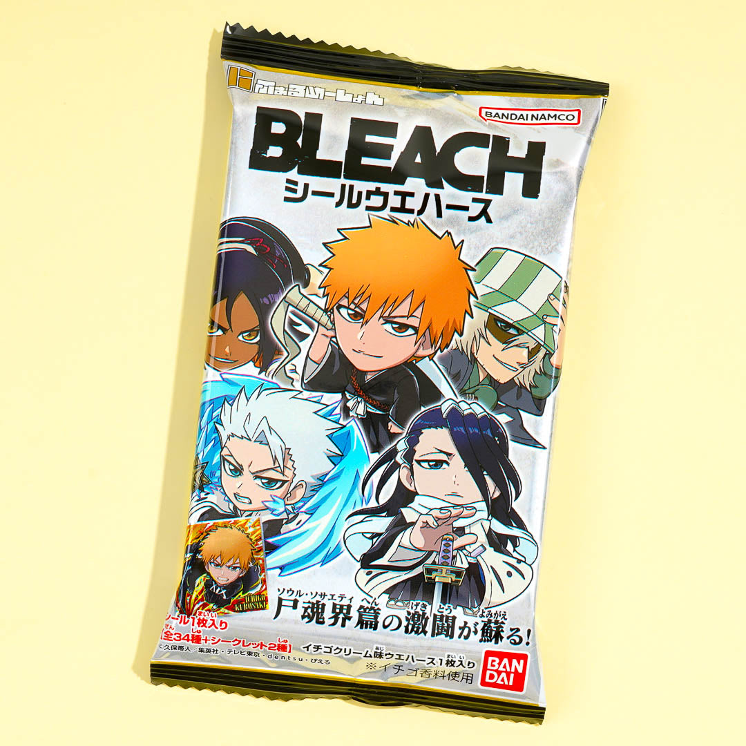 Add this strawberry cream-flavored wafer pack to your stash of anime snacks! It features prints of the chibi or small versions of Bleach characters. You'll get a collectible Bleach sticker in the pack too! Surprise yourself with a random sticker from a set of 36 designs when you order.