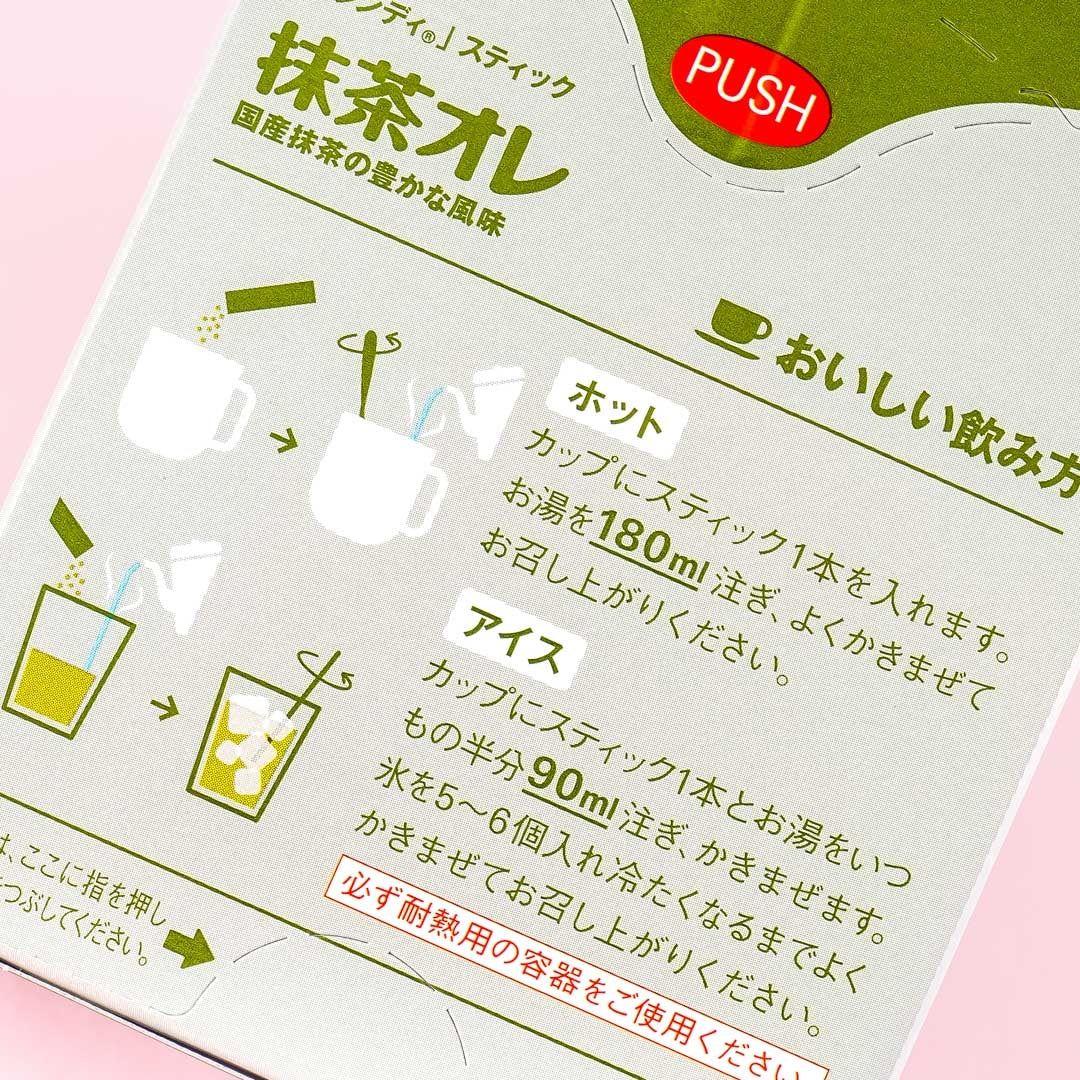 Make your own cup of matcha with this box of tea packets! Each packet can be used to make hot or cold matcha. To make hot matcha just add one packet to 180 ml of hot water. If you want cold matcha, mix one packet with 90 ml of water and then add 5 to 6 ice cubes.