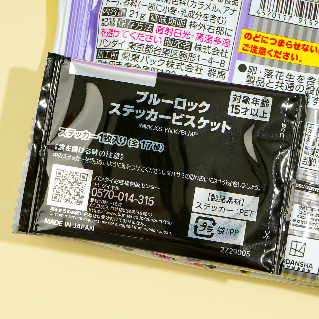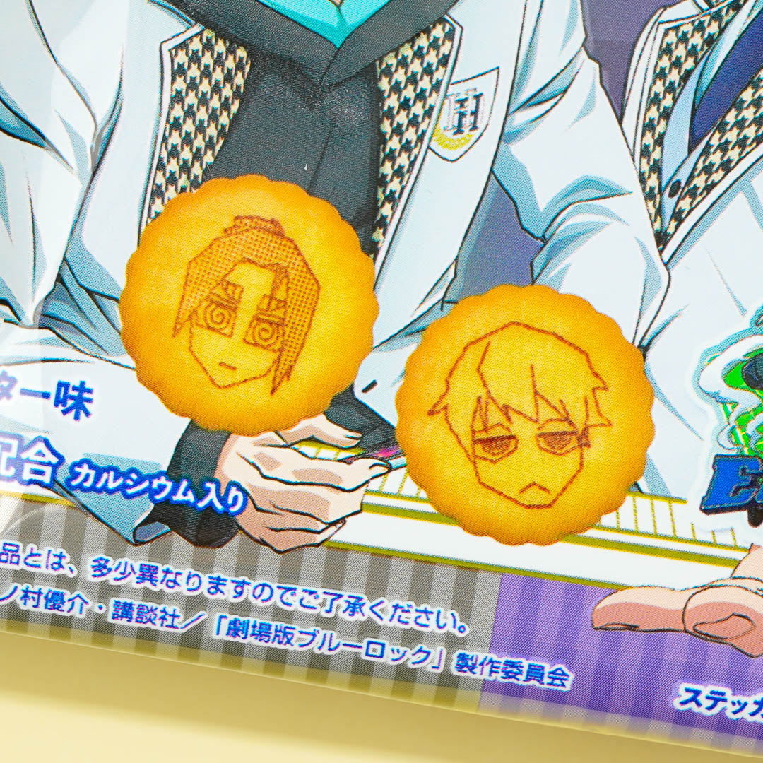 Munch on this pack of biscuits while watching your favorite sports anime. It features prints of characters from the anime, Blue Lock! Each biscuit also has a cute character embossed on it. This biscuit pack comes with a collectible die-cut Blue Lock sticker. Surprise yourself with a random sticker from a set of 17 designs!