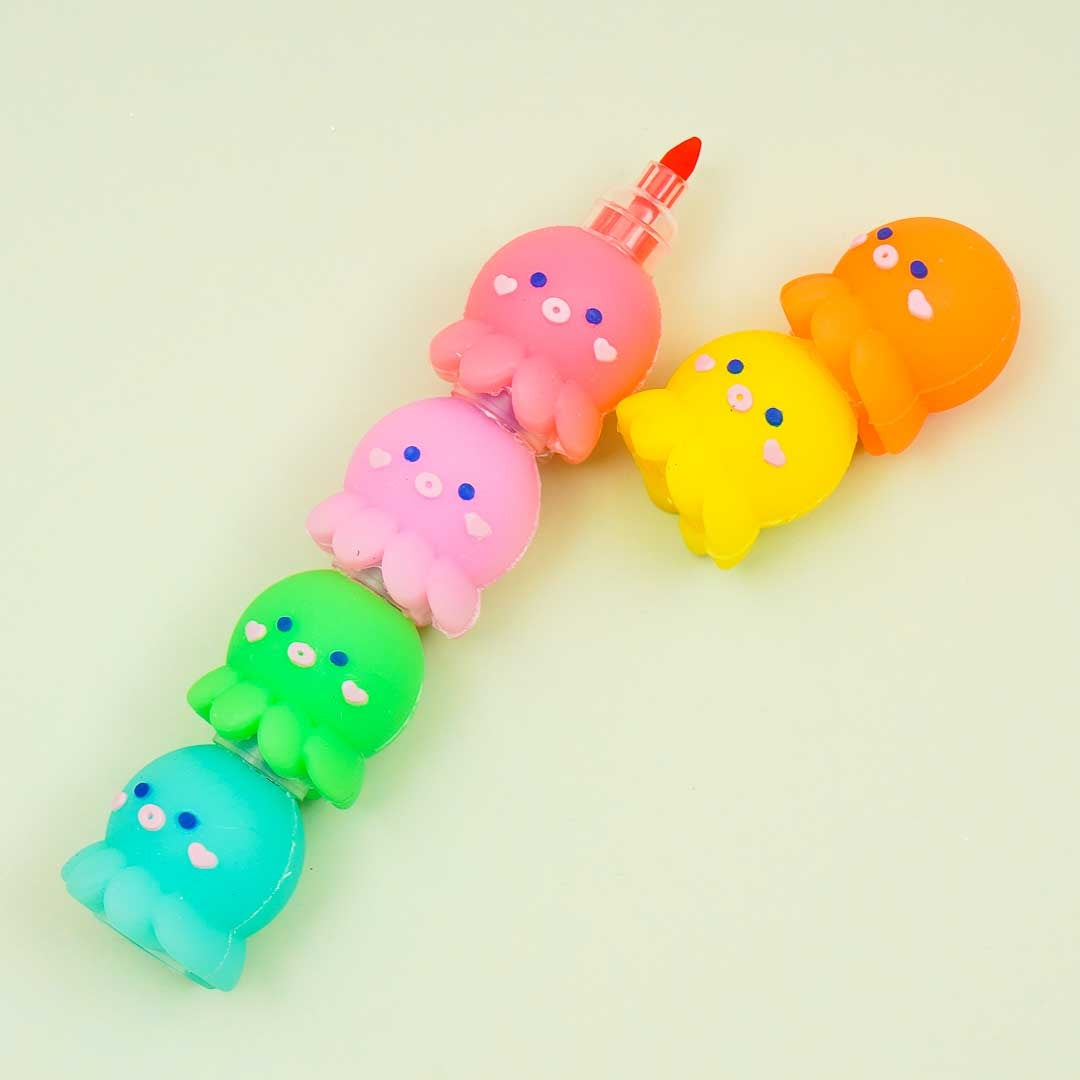 Nothing to complain about here. Price is worth it (for me) to not have to carry around individual/loose highlighters. Love the design+stackablity feature. If you’re used to a pen, might be kind weird when using the colors near the end, but I’ve been using another set of small, round highlighters I got from blippo a few years ago that only just started to dry up, so it wasn’t hard for me
