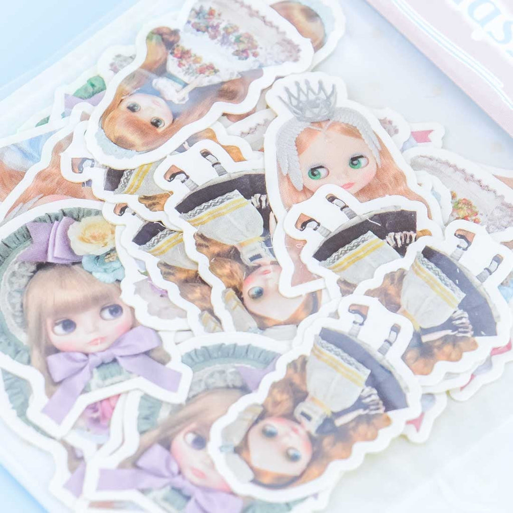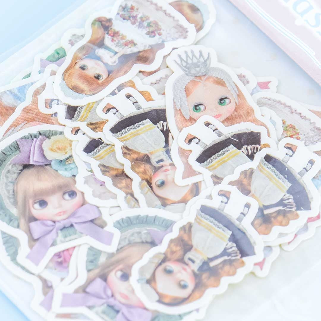 • A super kawaii pack of sticker flakes featuring Blythe dolls dressed in retro fashion