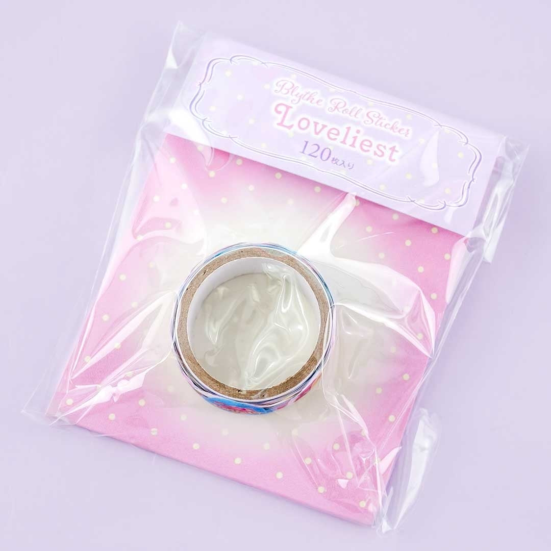 • A tape of stickers featuring prints of Blythe dolls with fashionable hairstyles and cute outfits