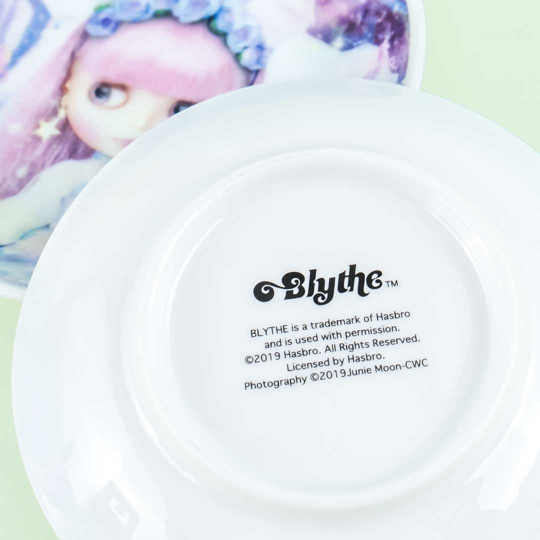 A kawaii set of dishes featuring Blythe dolls in magical settings
