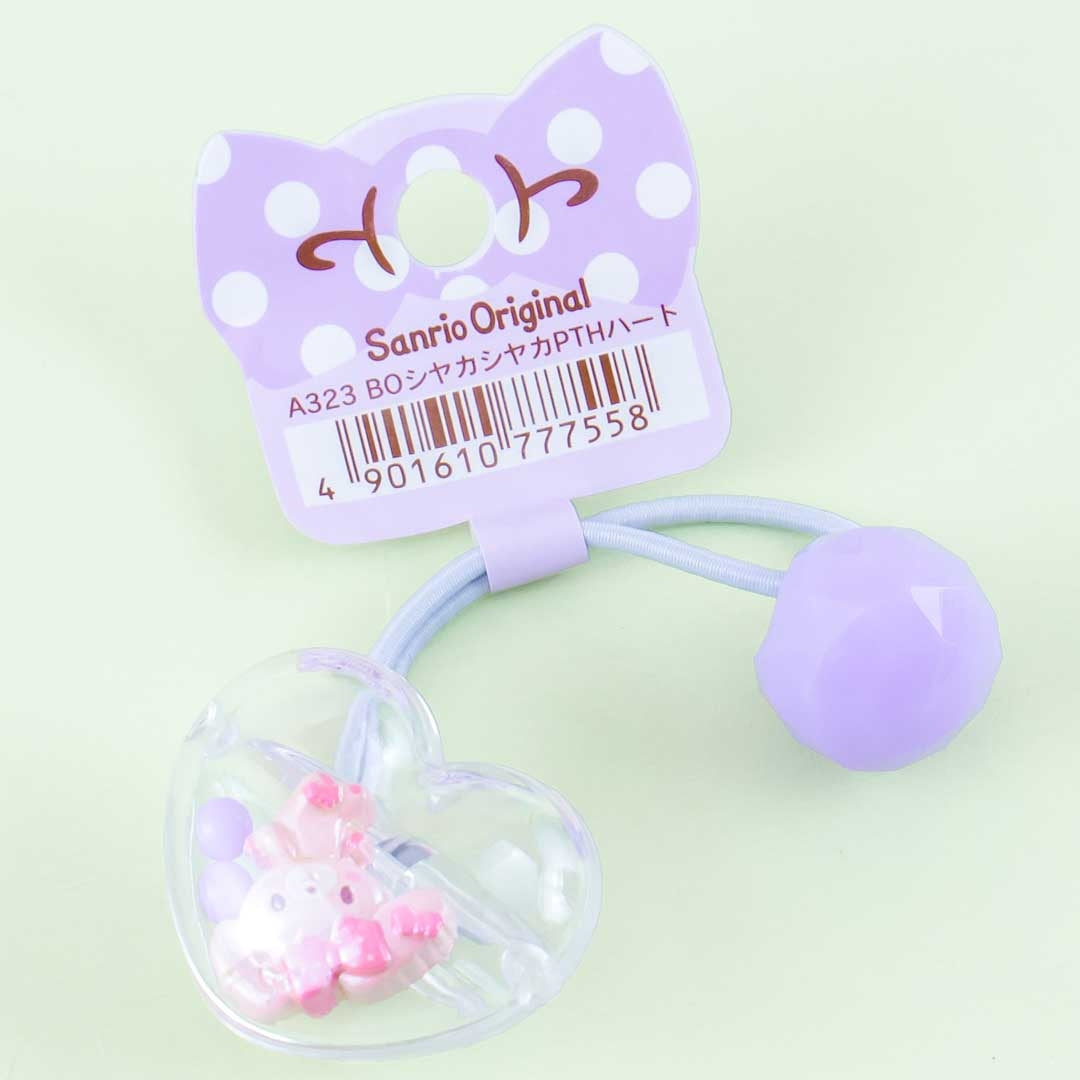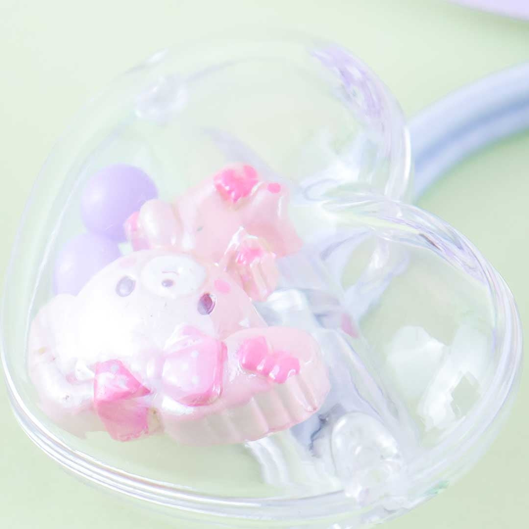 This super cute hair tie has a tiny Bonbonribbon charm inside a bigger transparent heart charm! Use this to add a dose of kawaii to your hairstyle.
