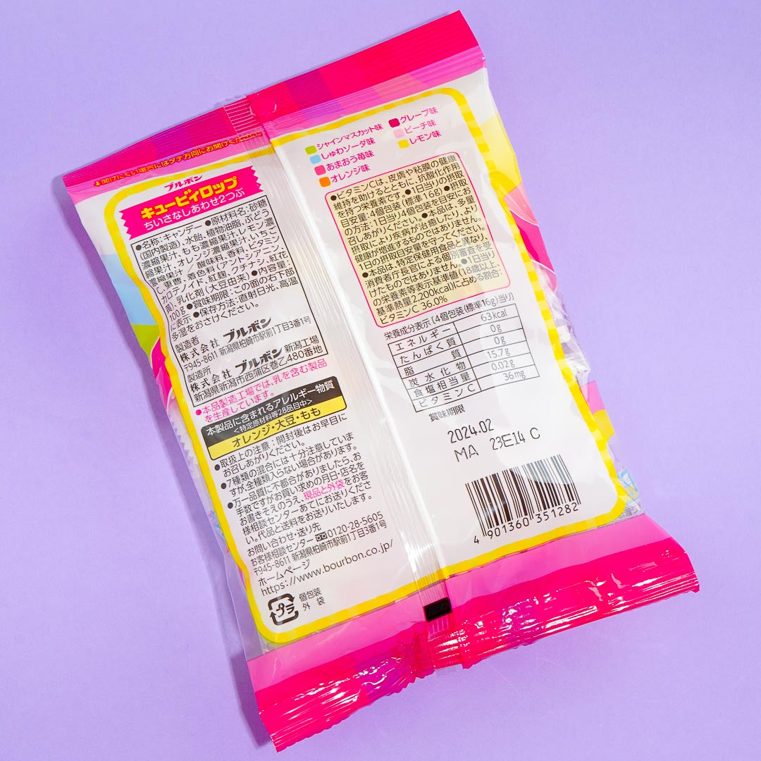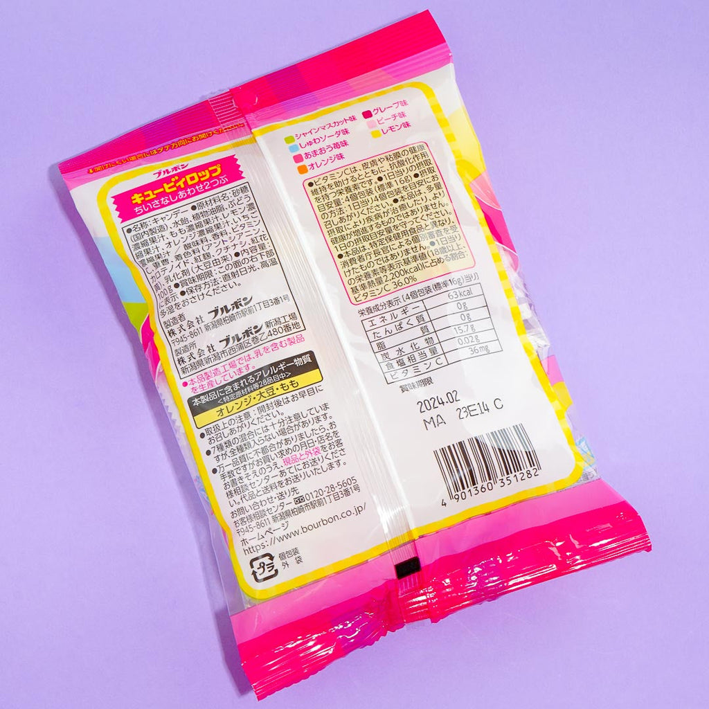This refreshing cube-shaped candy now has an updated look and taste! Enjoy the classic fruit flavors of grape, orange, shine muscat, peach, and lemon along with the two new addition — Amou strawberry and Shuwa soda.
