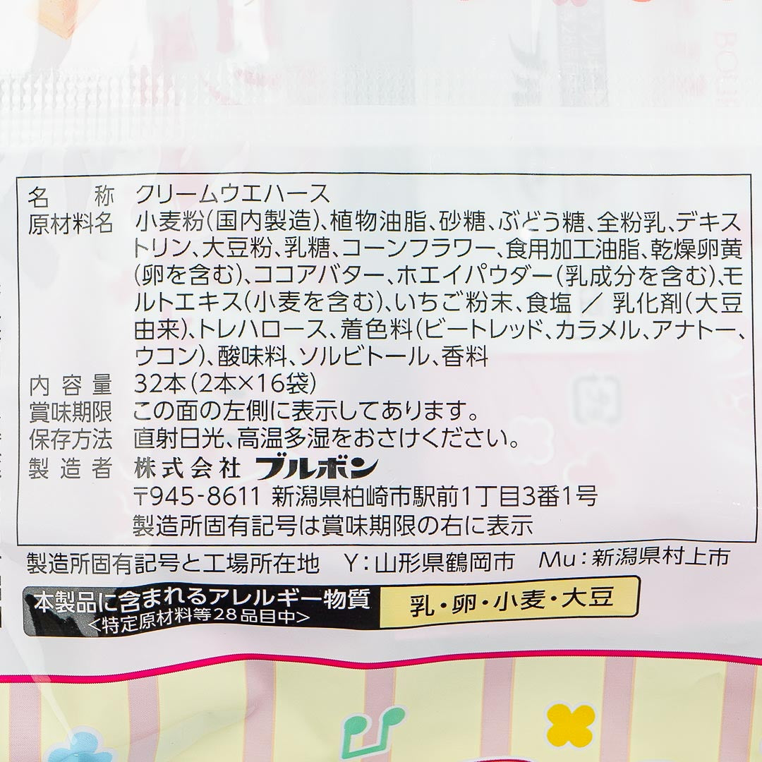 Snack on these delicious wafer sticks during teatime! Each hollow piece is filled with sweet and sour strawberry cream. The large bag is also decorated with prints of Easter bunnies and eggs.
