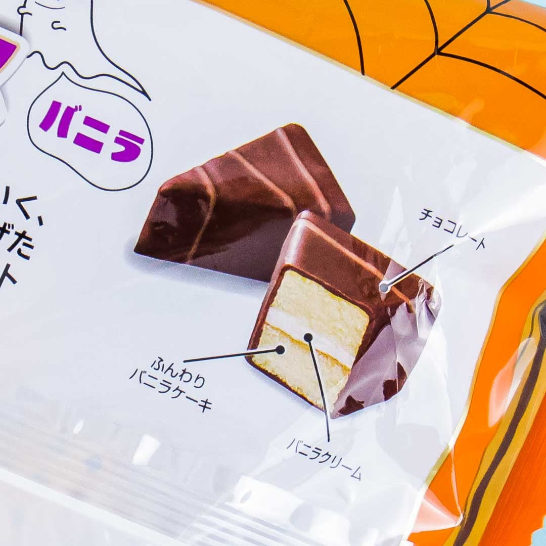 Celebrate All Hallows' Eve with this super soft mini cake! Each slice is made up of sponge cake layered with soft cream filling and coated with luxurious Japanese chocolate. They come in a cute Halloween-themed wrapper.