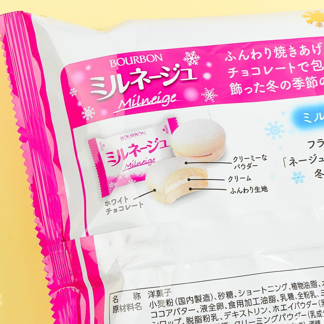 • A pack of delicious cream-filled dough sandwich treats wrapped in white chocolate