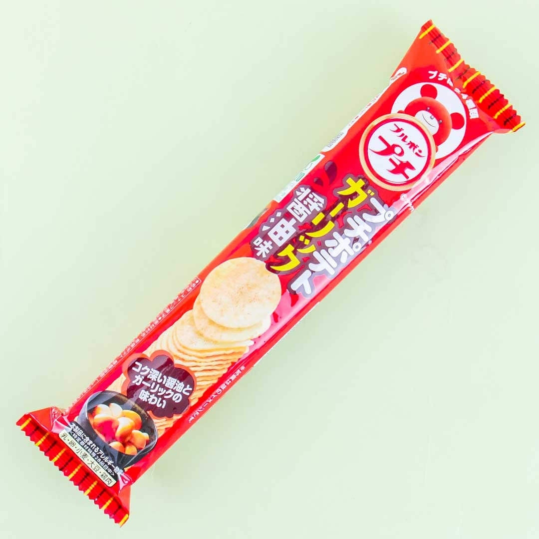 • A pack of garlic and soy sauce-flavored mini potato chips