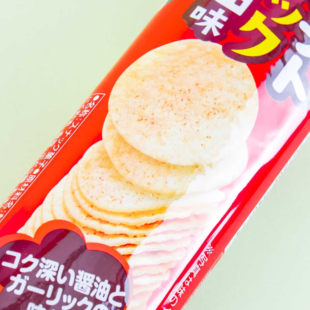 Snack on these mini potato chips that are flavored with soy sauce. These crisps also have a fragrant garlic taste for that extra savory kick!