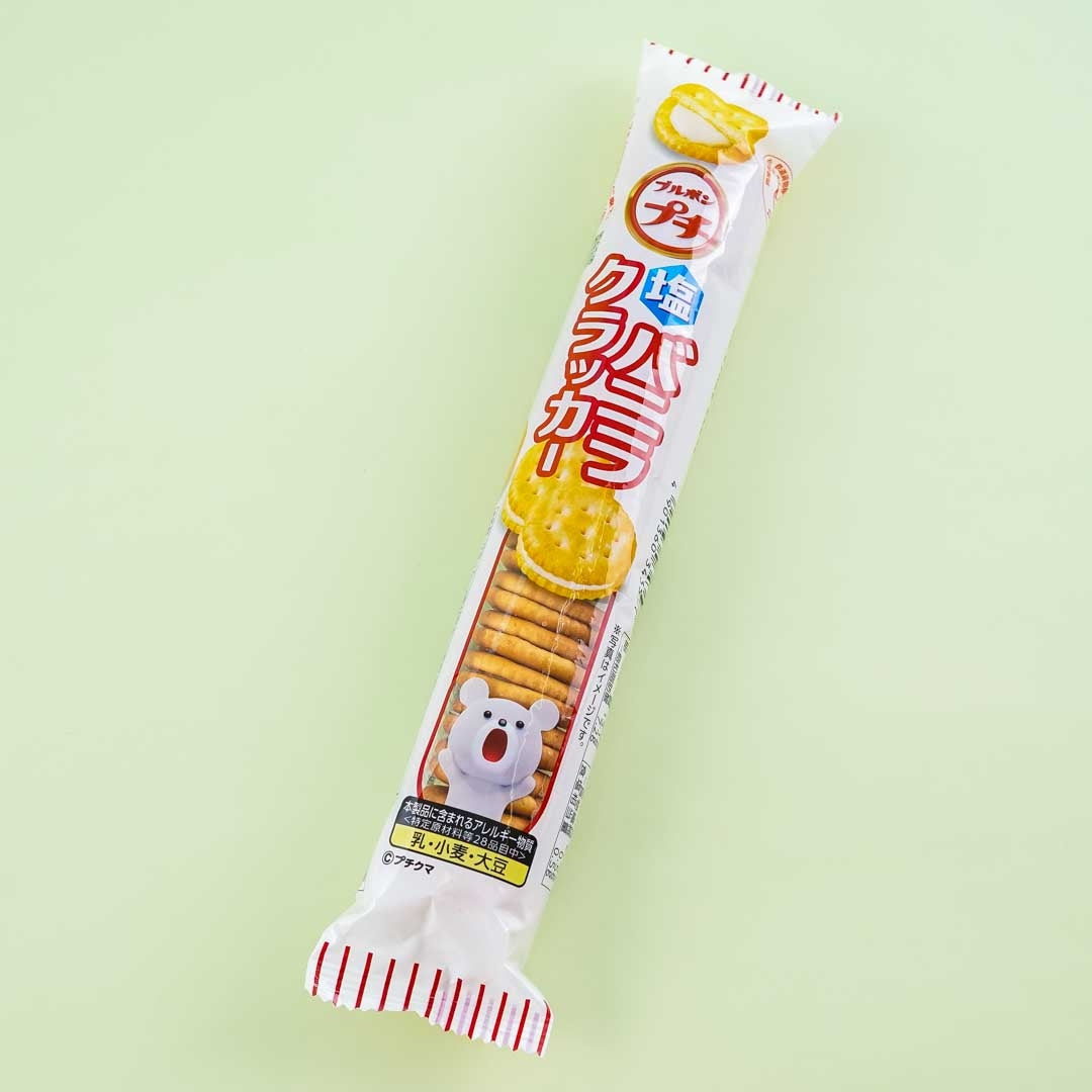 • A pack of mini salty sandwich crackers with sweet vanilla cream filling