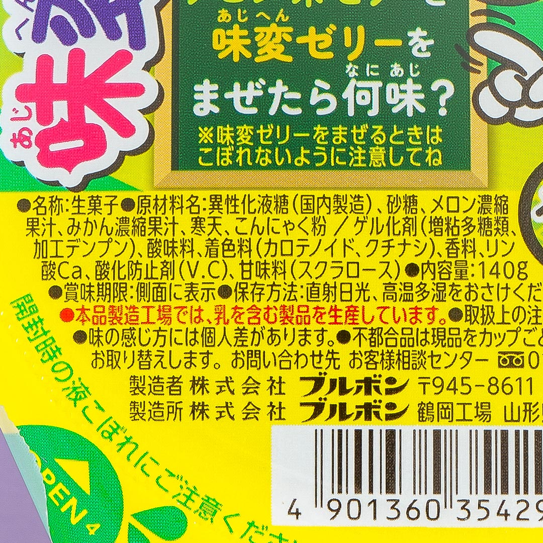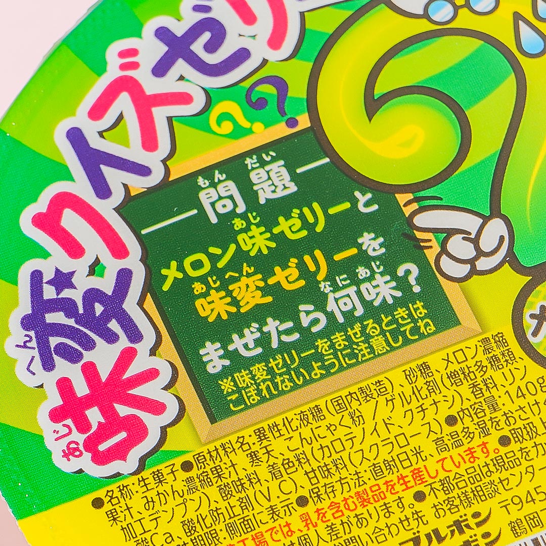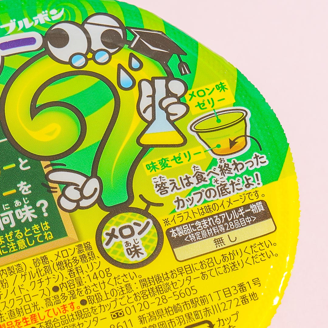 Have fun eating this yummy cup of strange melon-flavored jelly. It has two different layers that change the entire flavor when you mix it together! Can you guess what the new flavor is? Don't worry if you can't - you'll find the answer at the bottom of the cup when you finish all the jelly.