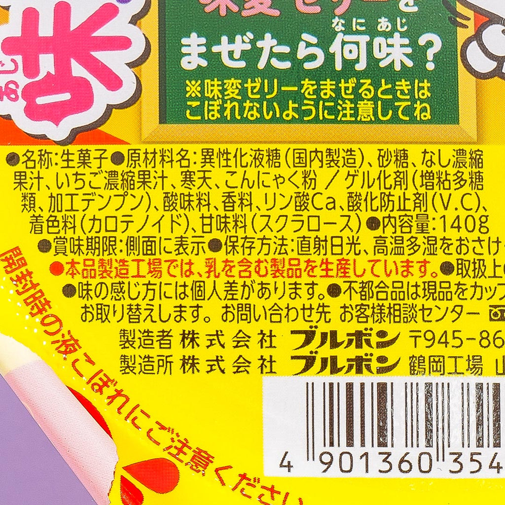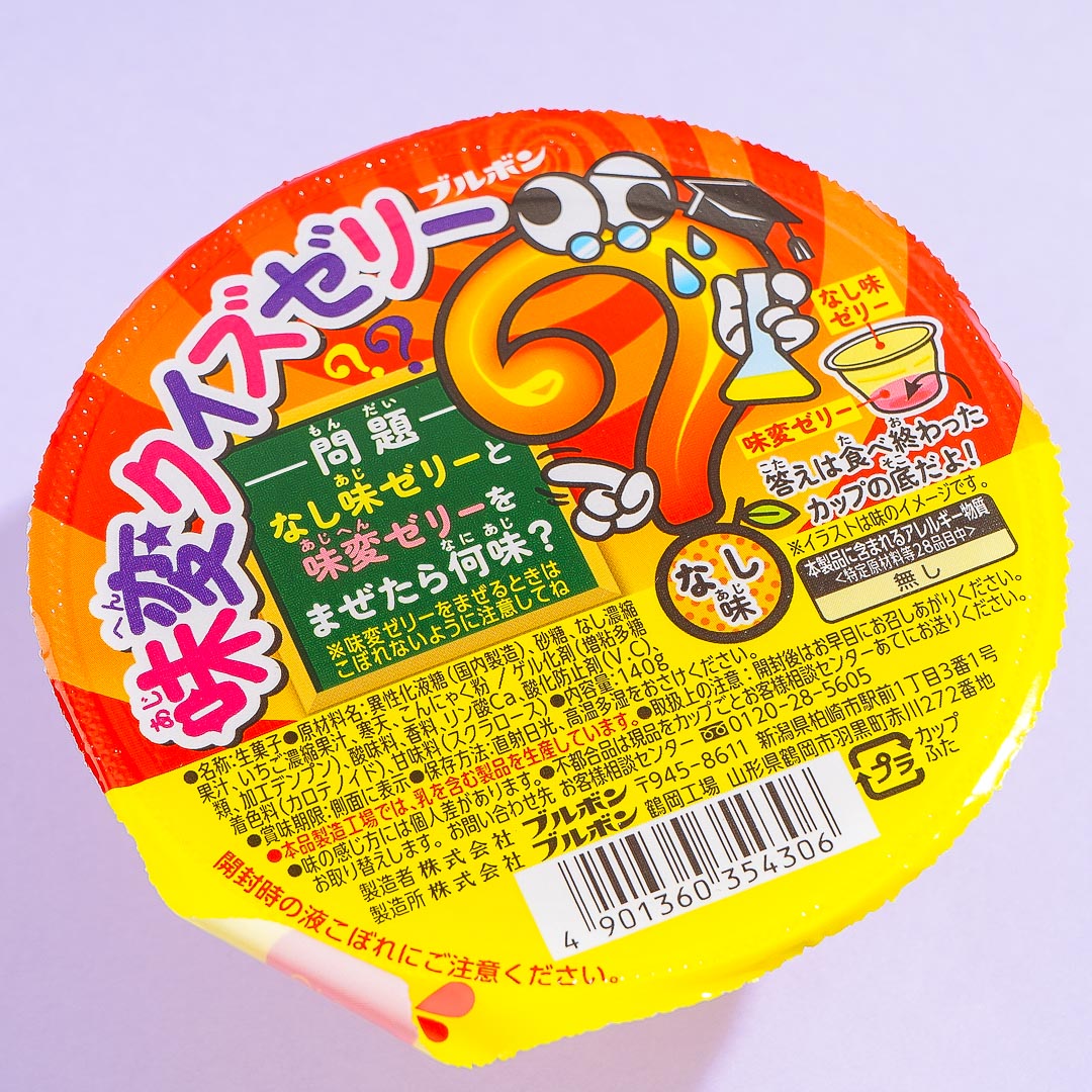 This pack of pear-flavored jelly has two different layers that change taste when mixed together. Can you guess what the new flavor is? Don't worry if you can't guess, you can find the correct answer at the bottom of the cup once you finish it.