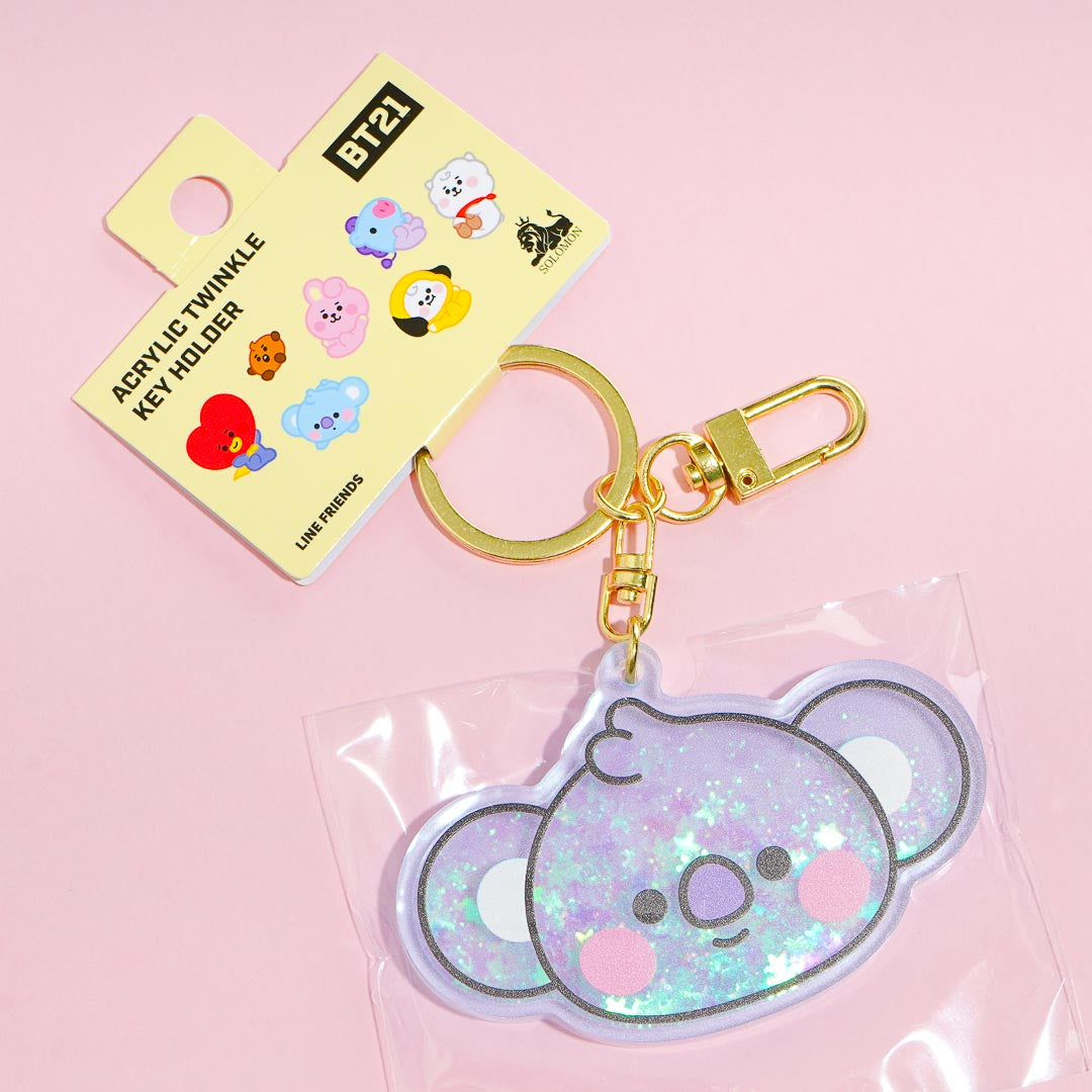 Brighten up your keys with this acrylic key holder! It features the cute face of KOYA filled with star-shaped glitter. This accessory also comes with a hook snap so you can attach it to your bag.