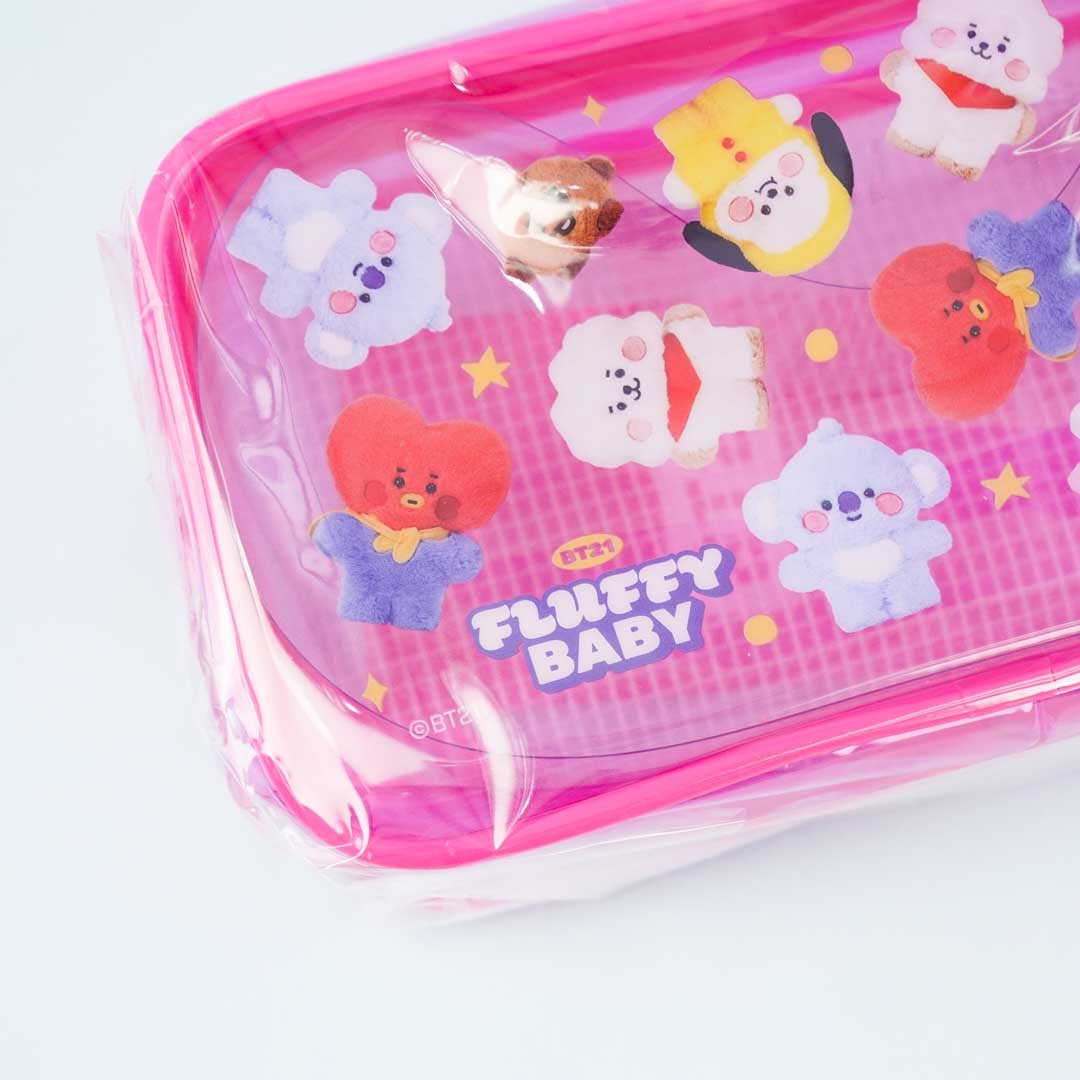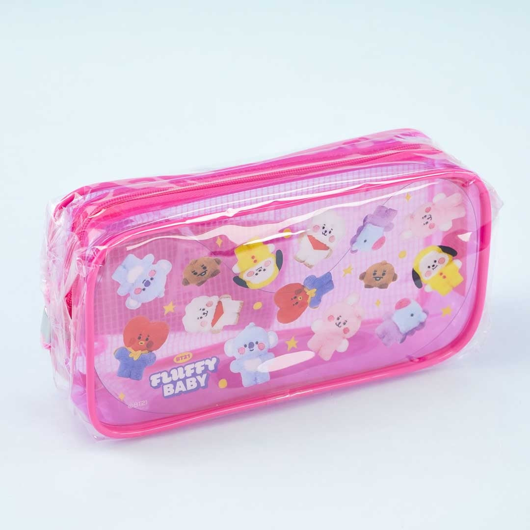 • A super cute pencil case with illustrations of fluffy BT21 baby plushies