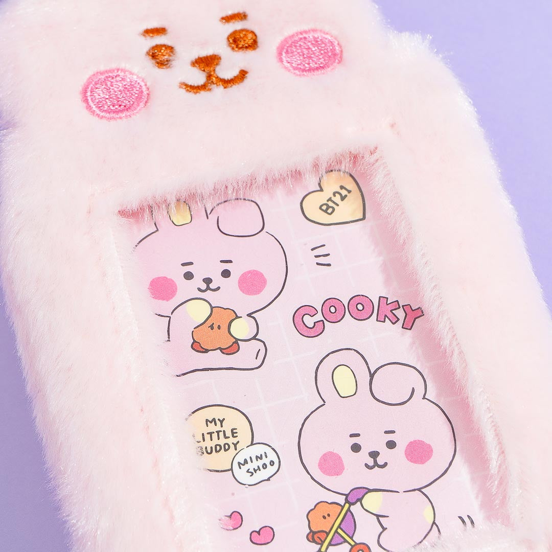 Bring your idol's photocard everywhere using this super cute BT21 card holder! It features COOKY's face and is made from soft and fluffy material. You can also use this as a bus card holder!