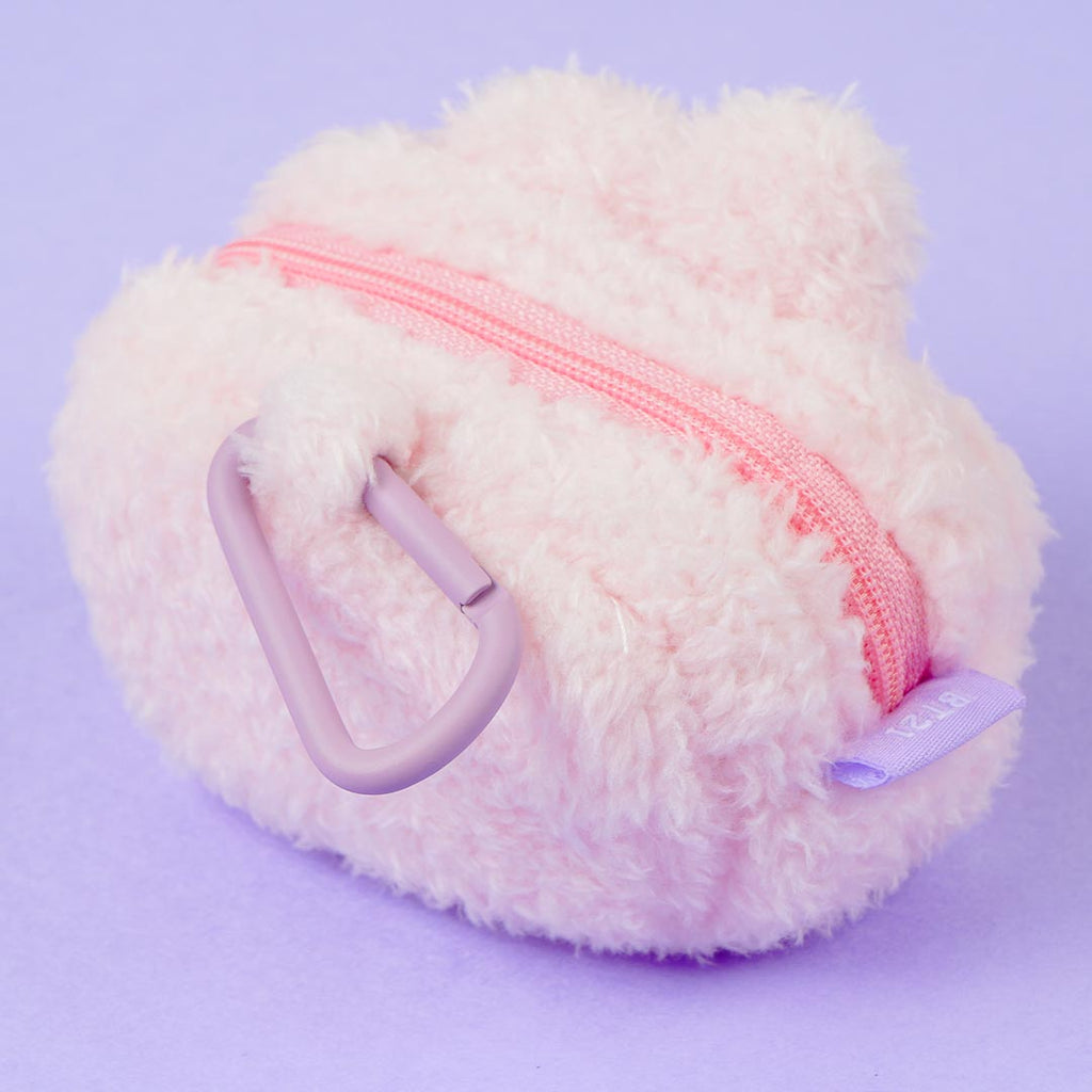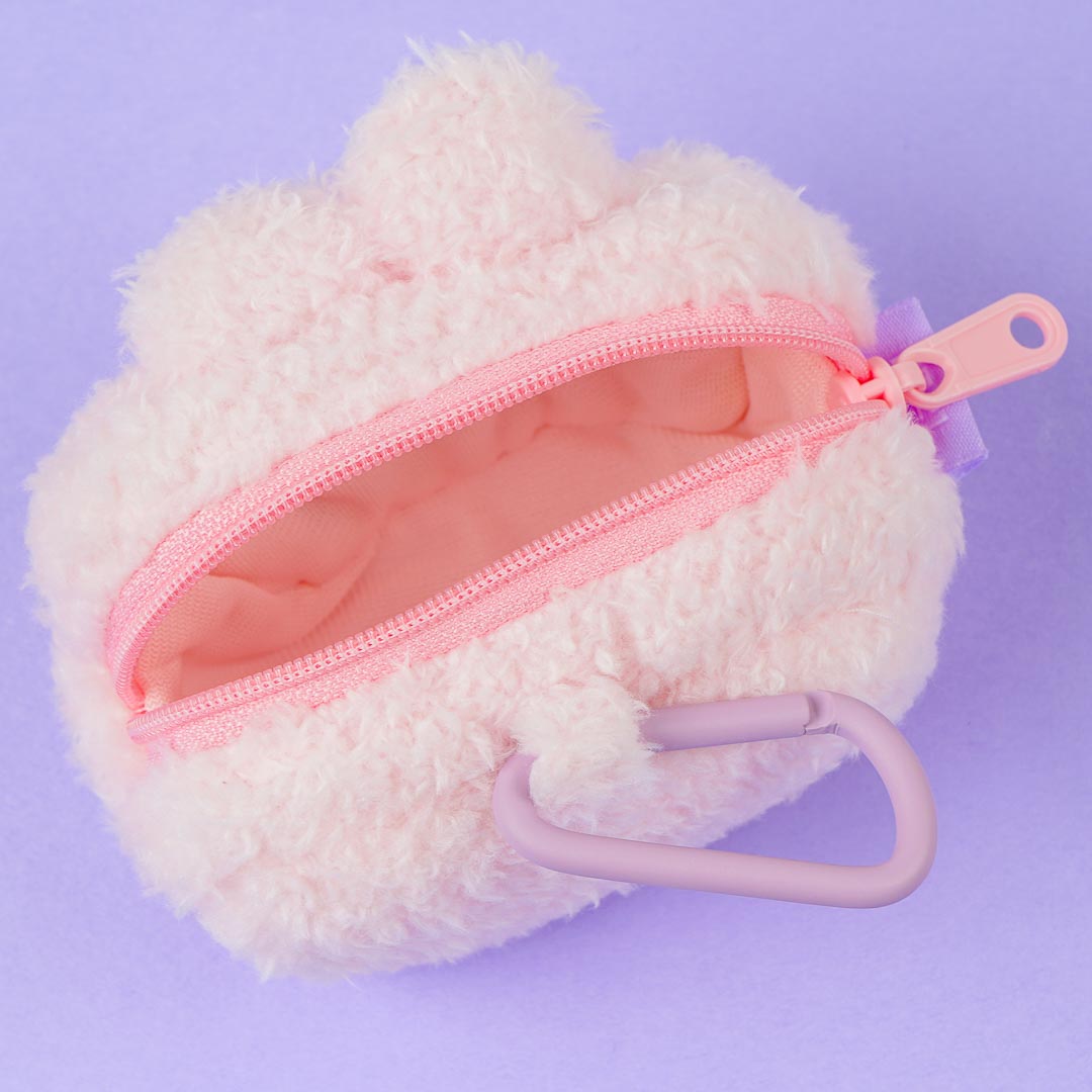 Keep your coins safe in this kawaii zippered coin purse! It's super fluffy and it features an illustration of COOKY's cute face. The carabiner makes it easy to carry around.