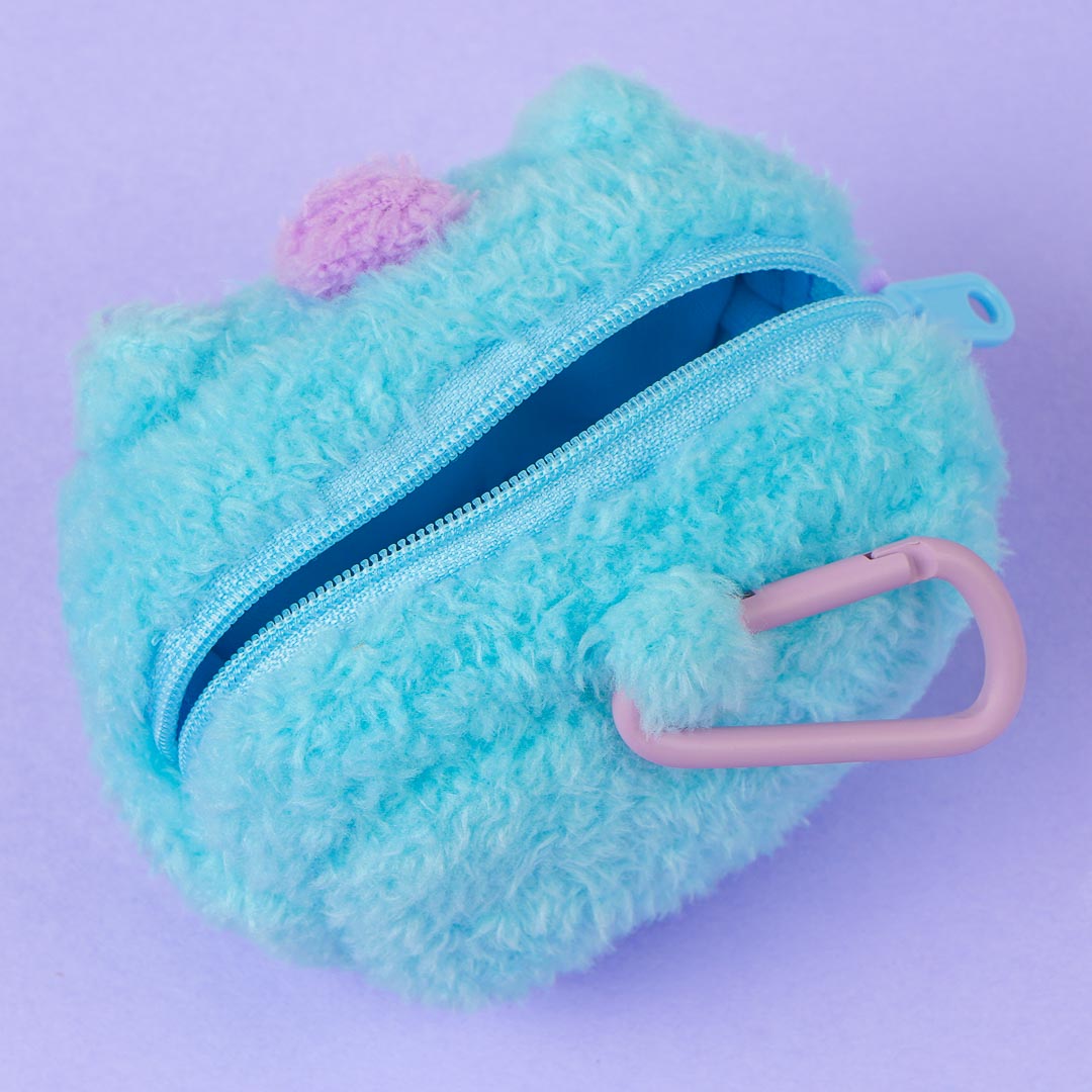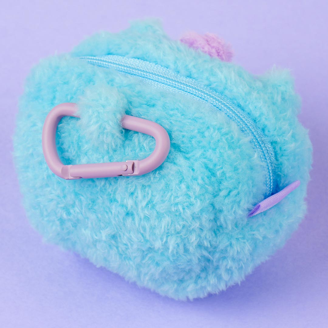 Store your lip balms in this kawaii zippered coin purse! It's super fluffy and it features an illustration of MANG's cute face. The carabiner makes it easy to carry around.