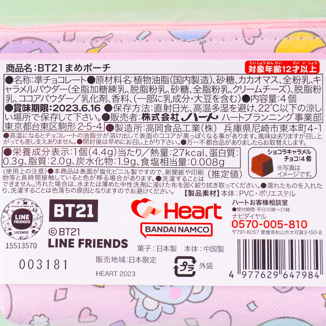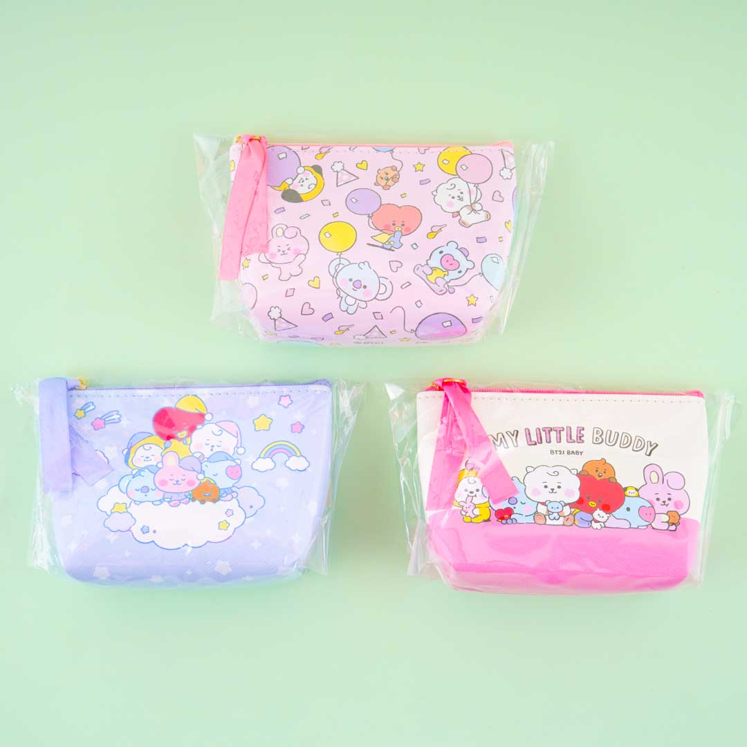 Show off your love for BTS and the BT21 by storing charms inside this cute zippered pouch! It showcases prints of BT21, the loveable characters created by the popular K-pop group BTS. This pouch also has 4 pcs of chocolate inside!