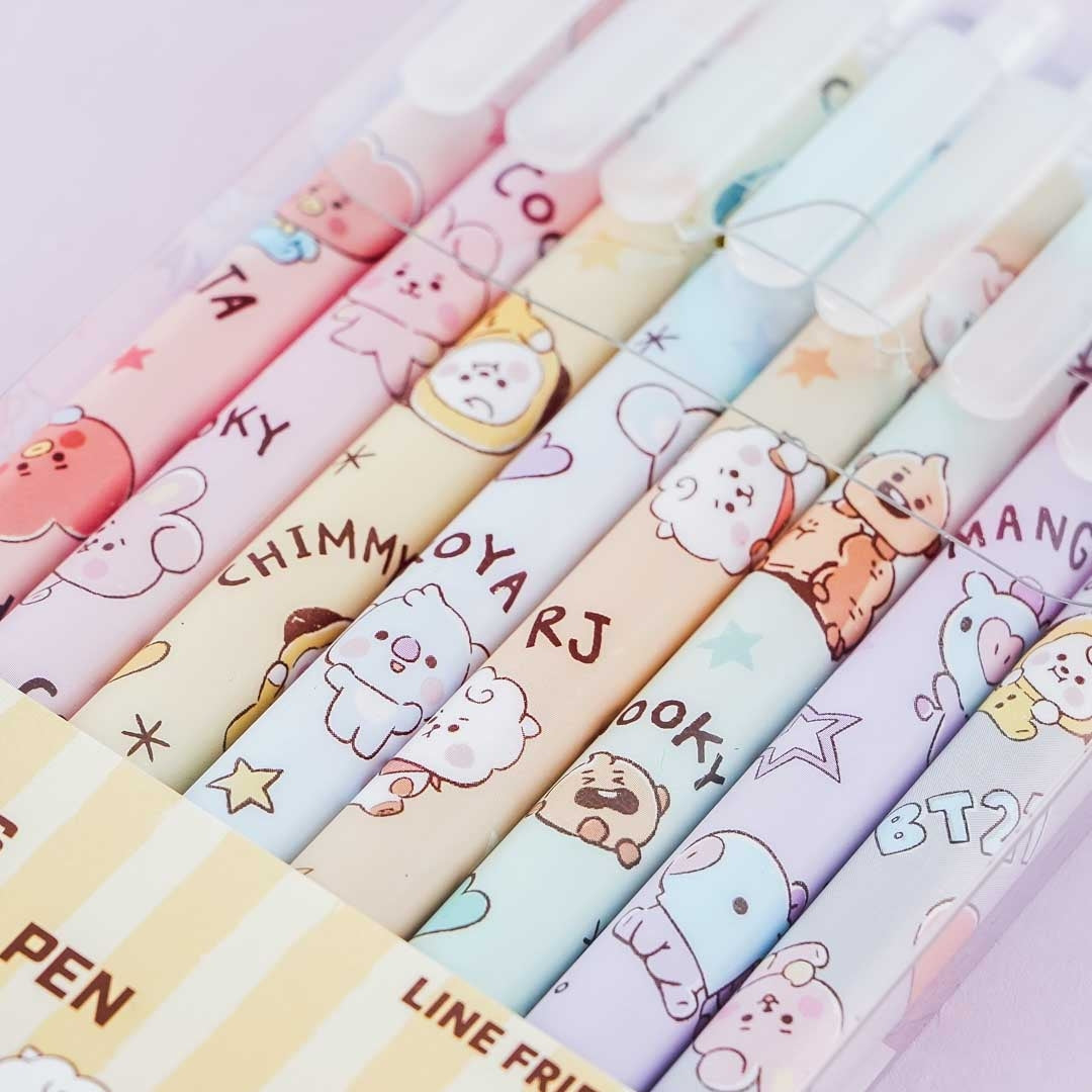 • A kawaii set of retractable gel pens covered in prints of BT21 characters