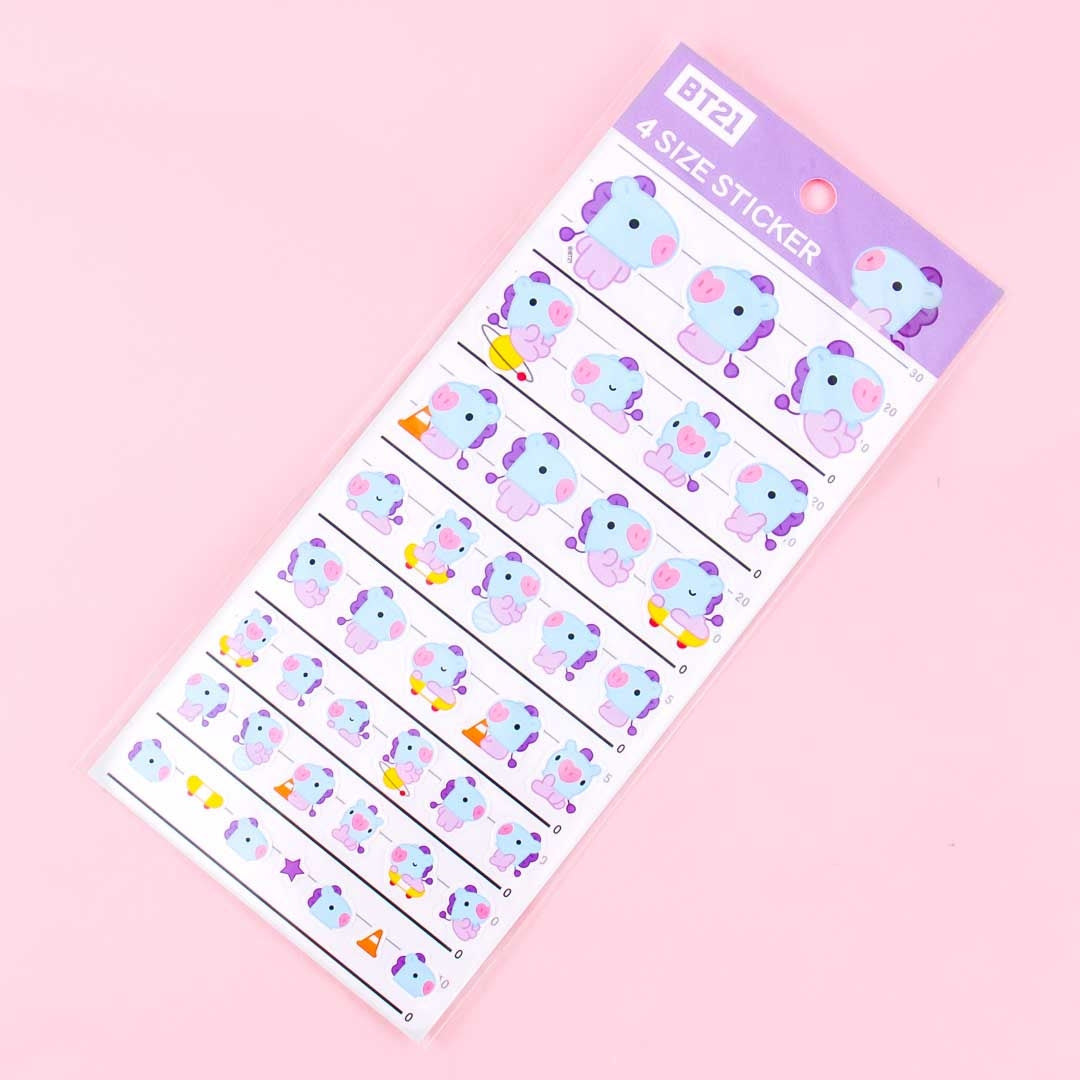 This kawaii sheet of stickers features four different sizes of Mang from BT21 in different poses! Use these super cute stickers to jazz up the covers of your BTS scrapbooks.