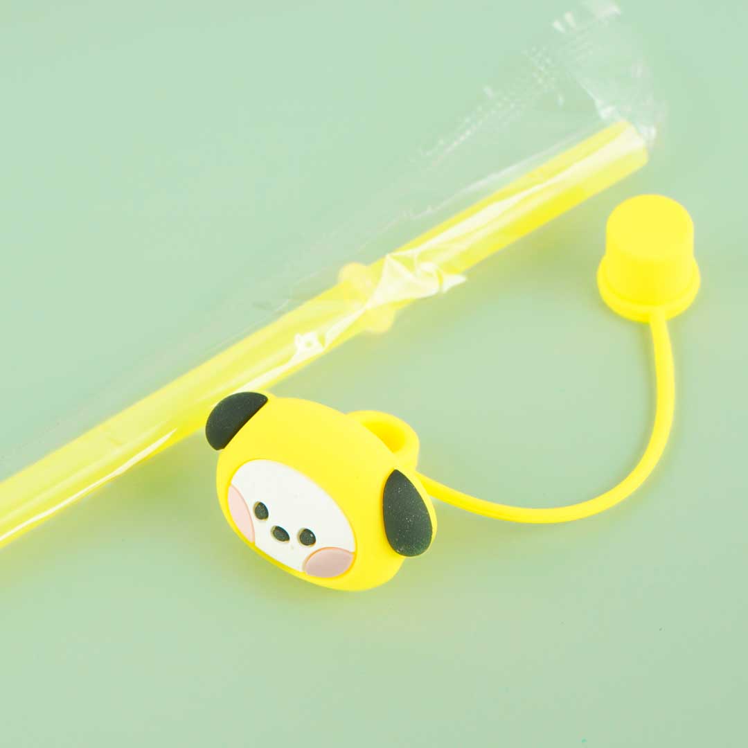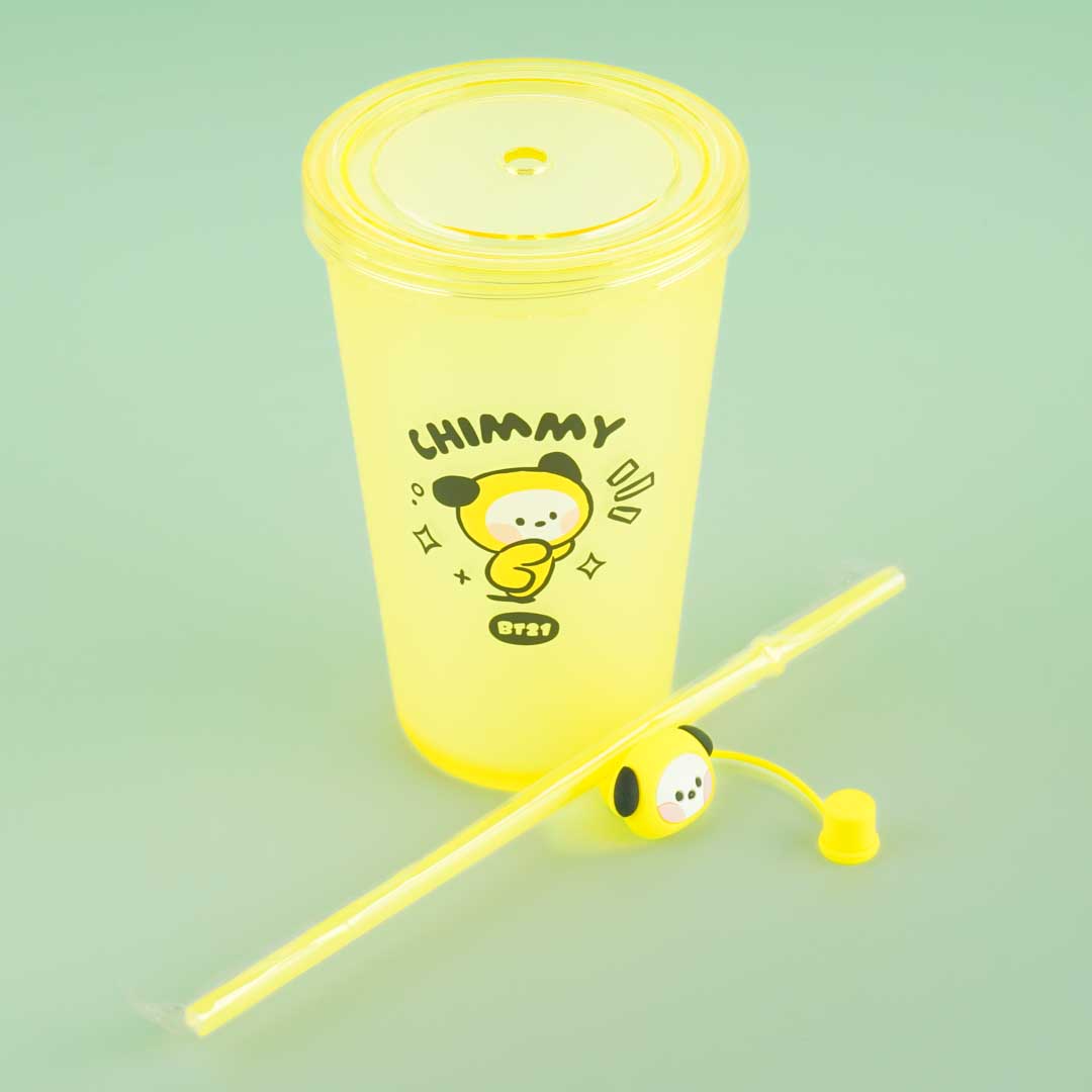 Enjoy sipping your favorite lemonade using this kawaii yellow tumbler! This cute cup is decorated with a Minini version of CHIMMY, the kind-hearted dog member of BT21! It also comes with a reusable straw that has a cover attached to a matching CHIMMY character rubber charm.