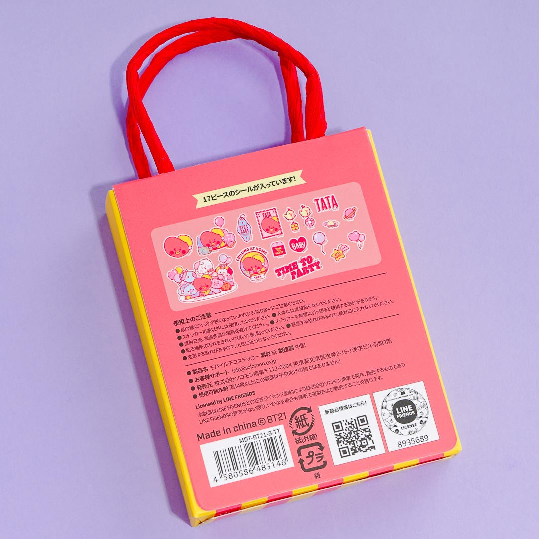 Have fun jazzing up your phone case with this cute box of stickers. It showcases TATA from BT21! This box of stickers also has one big sticker featuring all the BT21 characters together.