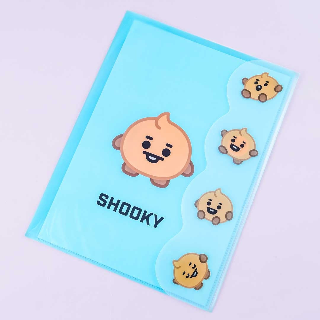 Secure your essential documents using this semi-transparent A4 file folder. It has pockets on both sides and features prints of the mini prankster, Shooky! It comes with a die-cut cover. Simply fasten using its hook and loop closure.