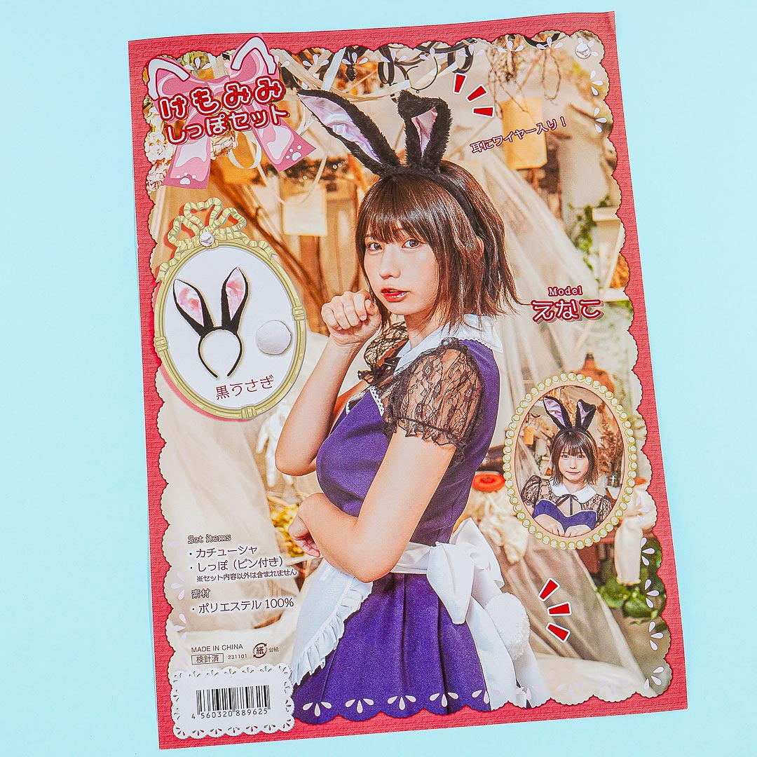 Wear this super cute set whenever you need a quick costume change! It comes with a headband with black rabbit ears that has bendable wires inside, which you can easily pose any way you like. The kawaii set also has a furry bunny tail brooch pin that you can easily clip to your outfit.