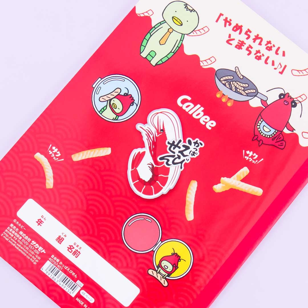 Use this cute softbound notebook with blank pages to write down your thoughts! Its cover resembles the packaging of Kappa Ebisen shrimp snacks from Calbee.