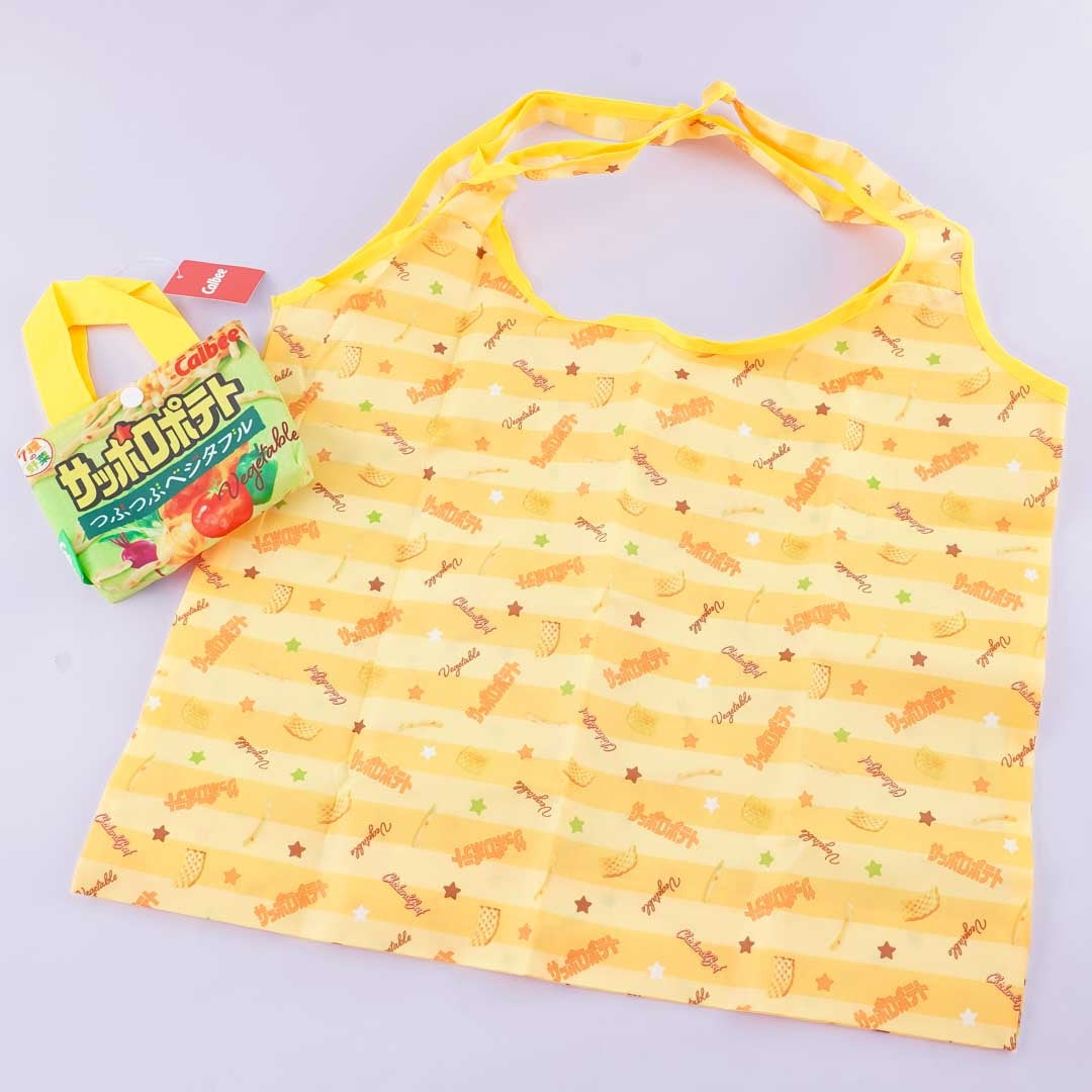 This kawaii eco bag features prints of the logo of Calbee Sapporo Vegetable Potato Snacks! Take it along with you when you go shopping for groceries. It comes with a storage case illustrated with the Calbee Sapporo Vegetable Potato Snacks packaging design.