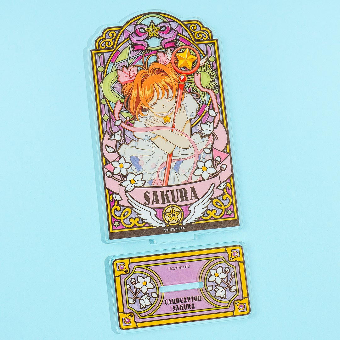 Instantly kawaii-fy your bedside table with this super cute acrylic stand! It features a stained glass-like illustration of Sakura Kinomoto in a white dress from Cardcaptor Sakura! This special design was created to celebrate the 25th anniversary of the first broadcast of this magical girl anime on TV.
