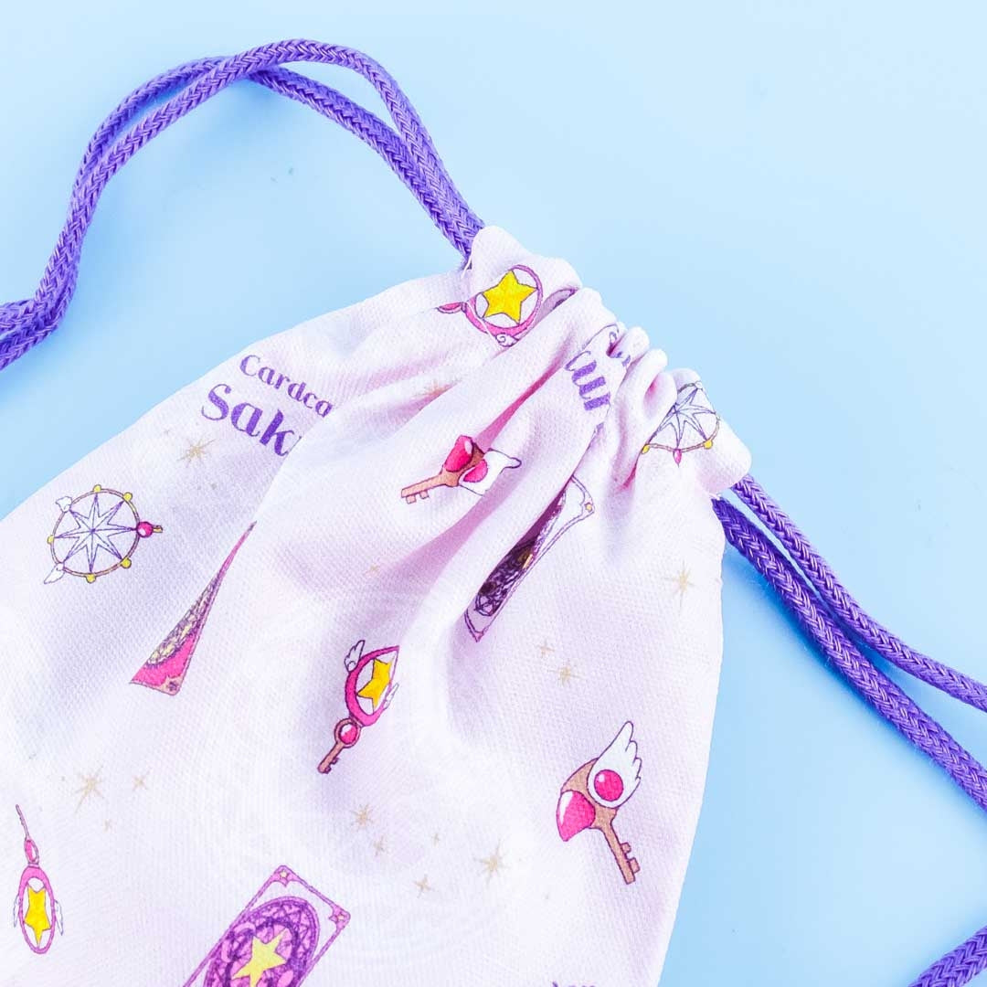 A drawstring bag featuring items from the Cardcaptor Sakura: Clear Card series