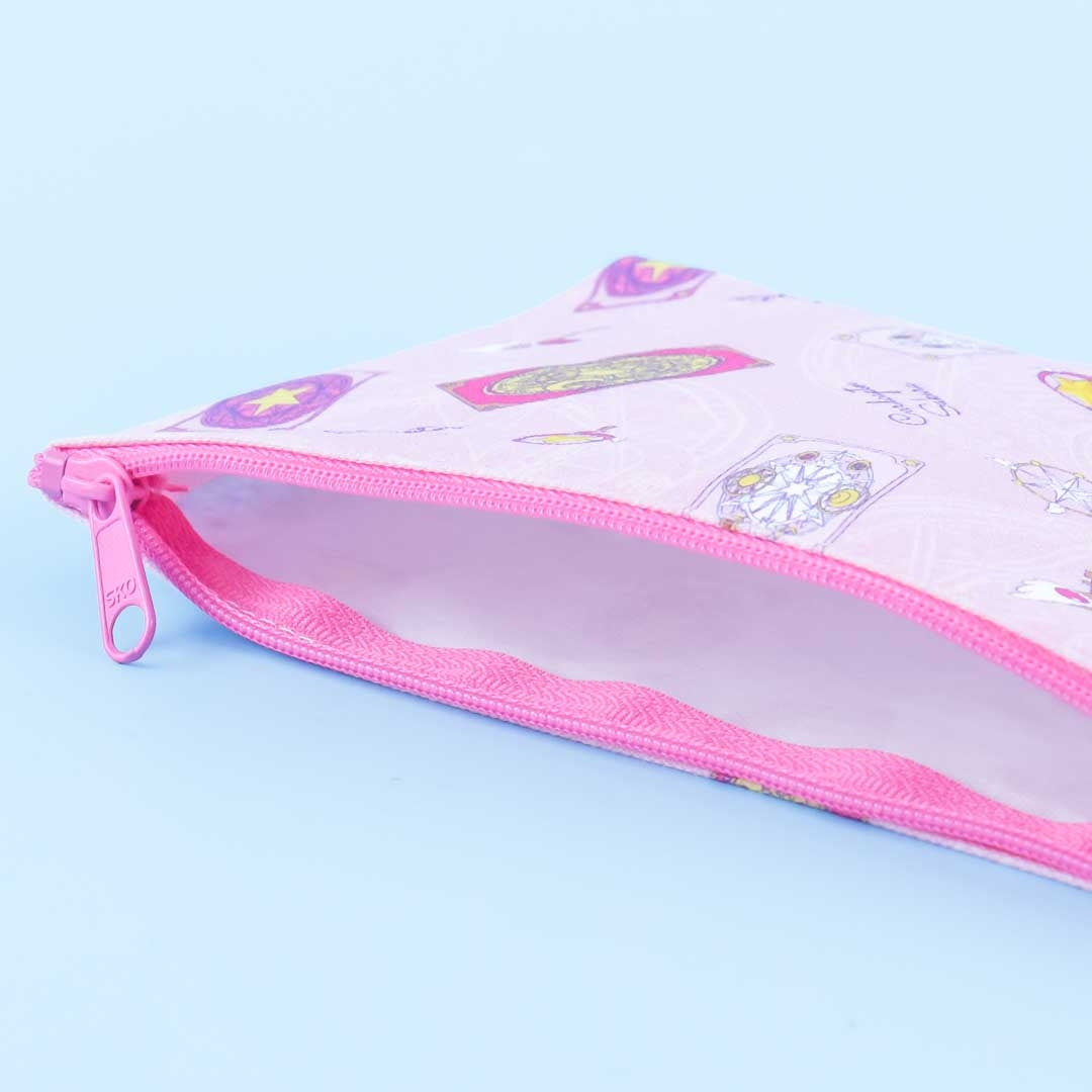 • A soft flat pouch featuring illustrations of items from the series Cardcaptor Sakura: Clear Card