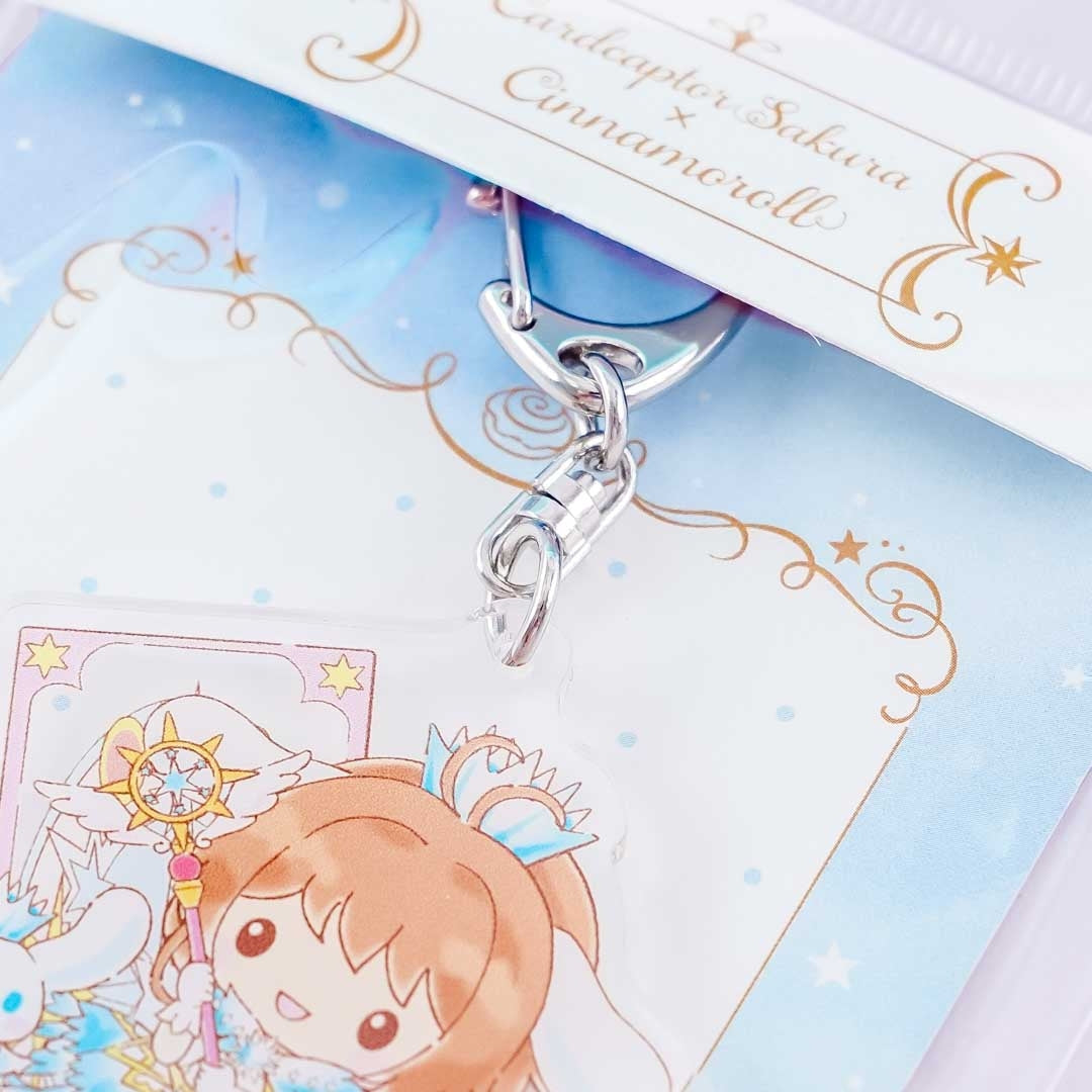 This kawaii acrylic charm is illustrated with Cinnamoroll together with Sakura from the popular anime "Cardcaptor Sakura." Attach it to your favorite bag with its metal clip!