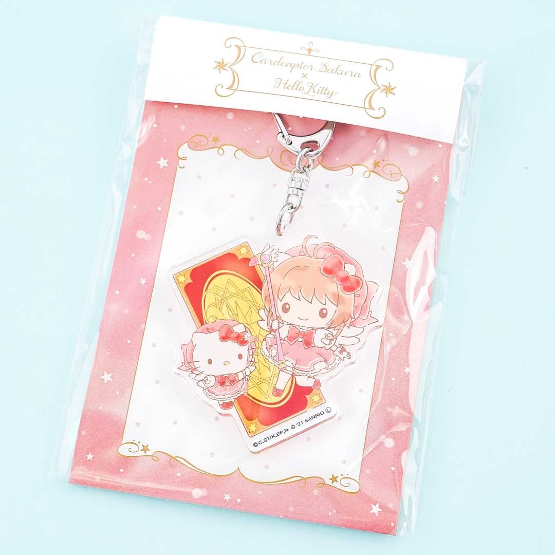 • A cute die-cut acrylic charm illustrated with Hello Kitty and Sakura from Cardcaptor Sakura