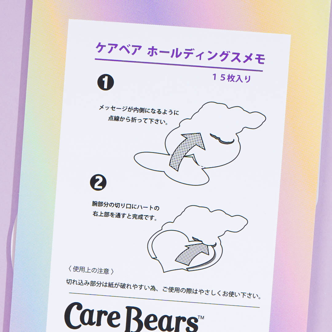 Give some love to your friends with sweet messages written on these cute memo sheets! There's a heart-shaped area for your message that folds up so it looks like the Care Bears are holding the heart.