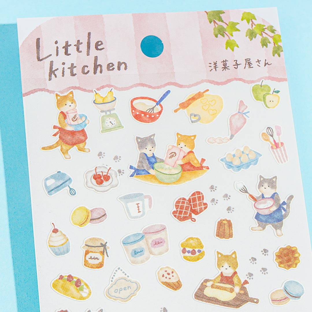 Decorate your plain notebook covers using this super cute sheet! It features kawaii die-cut illustrations of cats busy cooking and baking in the kitchen. You can also add these stickers to your arts and crafts kit!