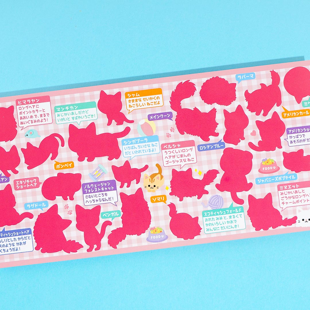 Have fun decorating your gadgets and learning about cats with this cute sticker sheet! It includes kawaii puffy stickers and a peel-off page with interesting trivia about cats. The sheet is foldable so you can turn it into a picture book.