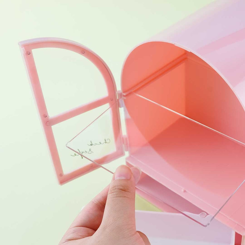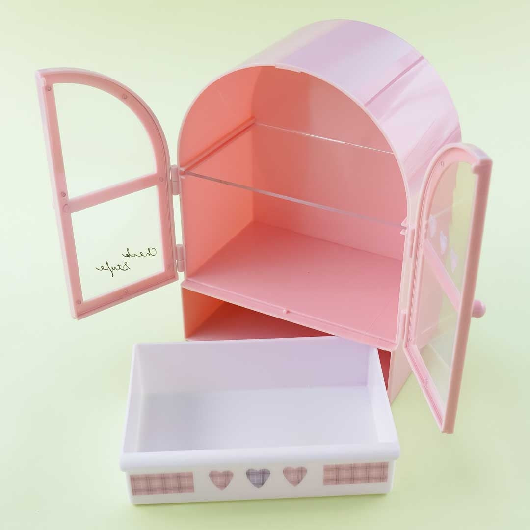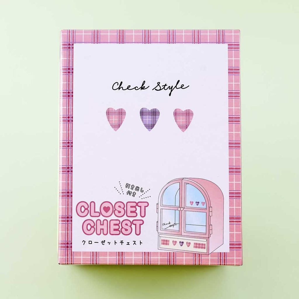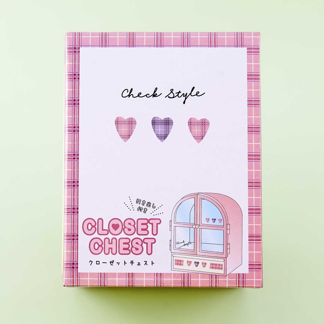 Keep your desk organized by using this cute closet-shaped chest! It features checkered hearts. The top of the chest has a removable shelf and the bottom part has a drawer!