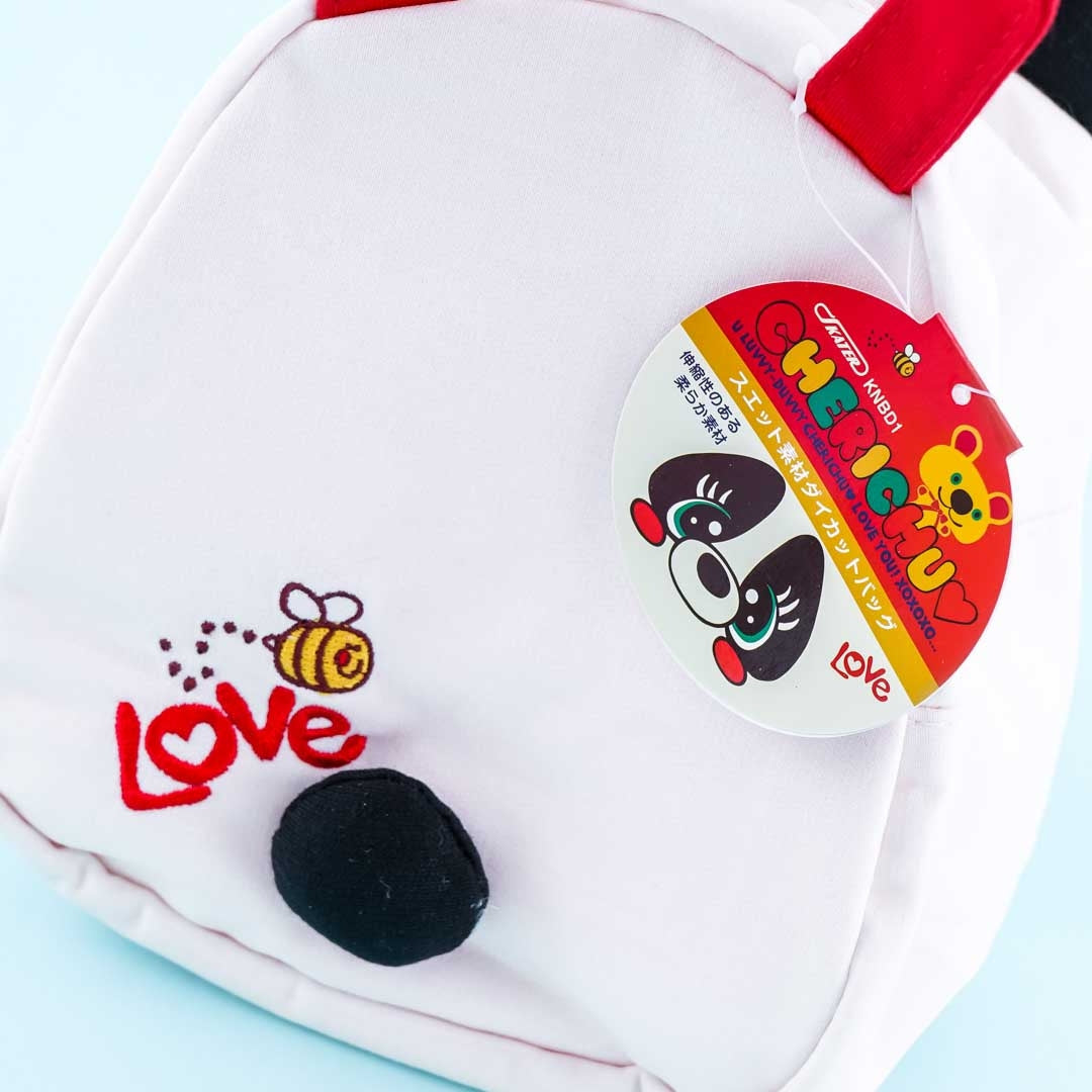 Keep your meals and snacks warm inside this kawaii lunch bag. This double zippered bag is made of durable Polyester material. It features a baby panda hugging a bear and a cute "LOVE" icon with a bee at the back.